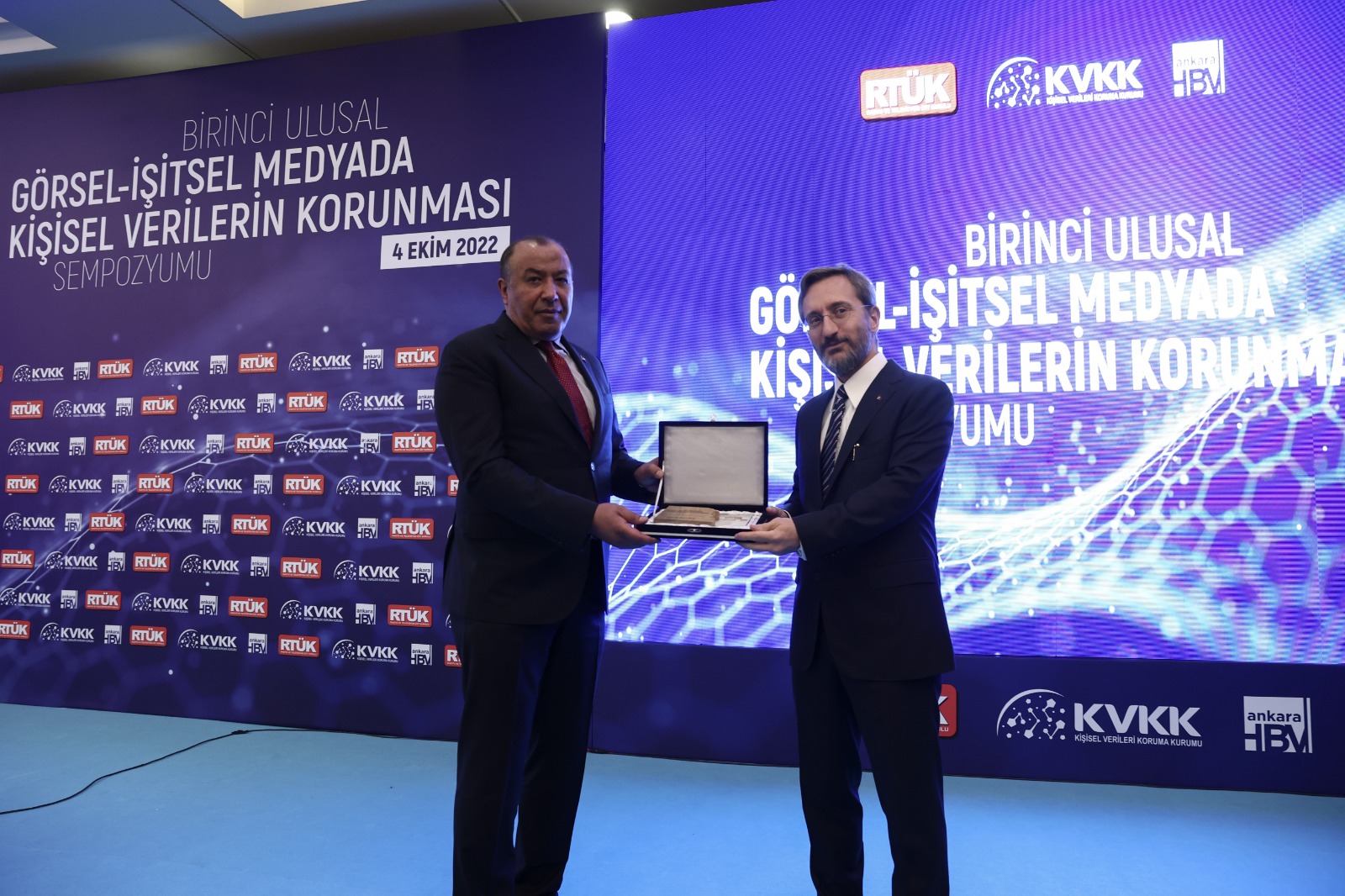 Cumhurbaşkanlığı İletişim Başkanı Fahrettin Altun, bir otelde, Kişisel Verileri Koruma Kurulu (KVKK) ile Radyo ve Televizyon Üst Kurulu (RTÜK) işbirliği ve Ankara Hacı Bayram Veli Üniversitesi’nin katkılarıyla düzenlenen 1. Ulusal Görsel-İşitsel Medyada Kişisel Verilerin Korunması Sempozyumuna katıldı.