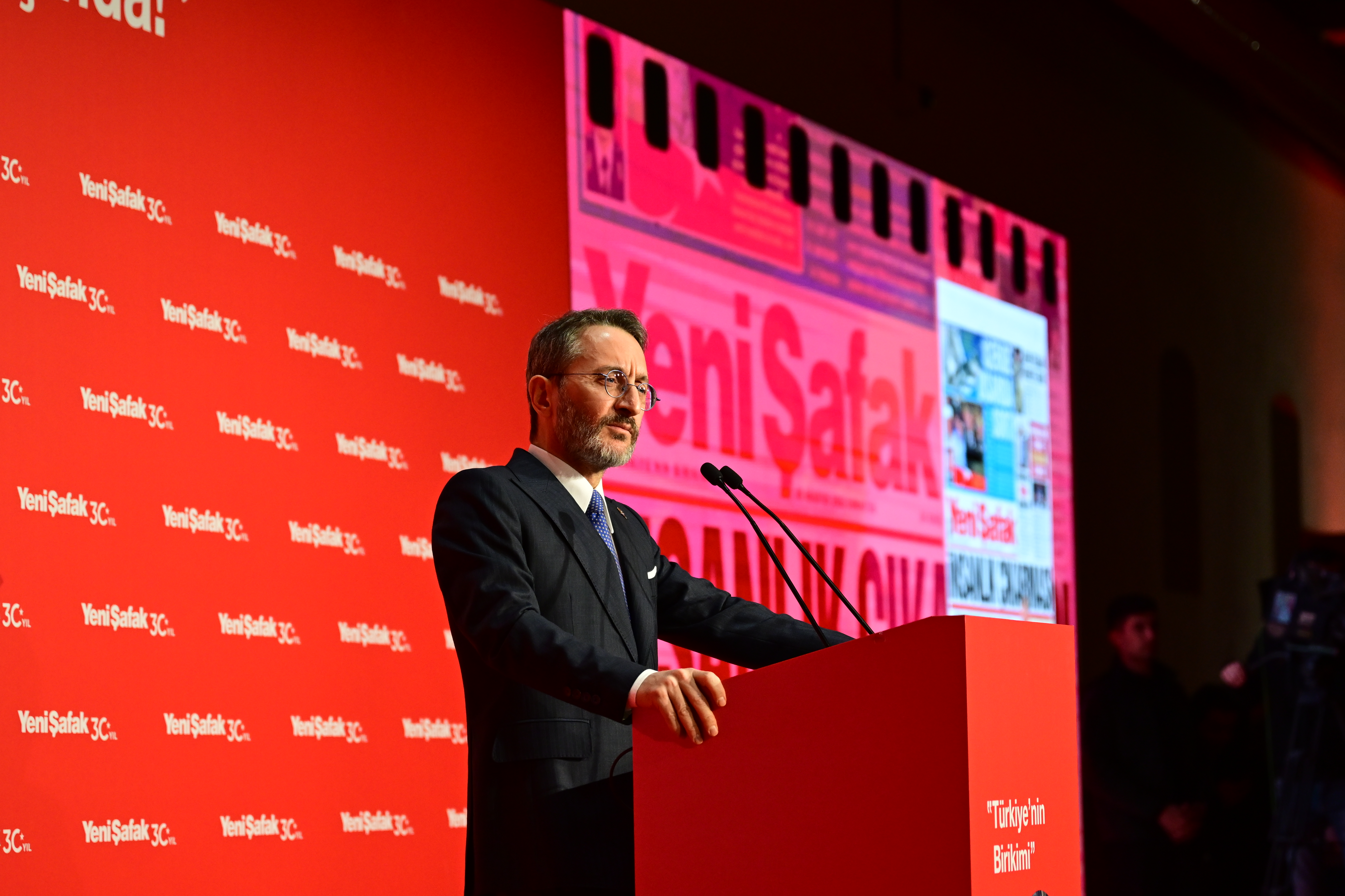 İletişim Başkanı Altun, bu alanın sürekli geliştiğini ve bu alanda sürekli yeni hibrit tehditlerle karşı karşıya kaldıklarını dile getirerek, "Özellikle yapay zekâ teknolojileri sonrasında yeni meydan okumalarla karşı karşıyayız. Yapay zekâ alanını yönetmek bu anlamda son derece önemli bir husus. Bugün Türkiye'deki köklü medya kuruluşlarının bir diğer meydan okuması da uluslararasılaşma meselesidir. Yeni Şafak'ın bu yöndeki güçlü gayretlerinin de farkındayız. Bunun için de kendilerini tebrik ediyoruz. Zira artık Türkiye Sayın Cumhurbaşkanımızın liderliğinde bir uluslararası adalet mücadelesi veriyor ve bu mücadelede gerçekten medyamızın desteği çok ama çok önemli." dedi.