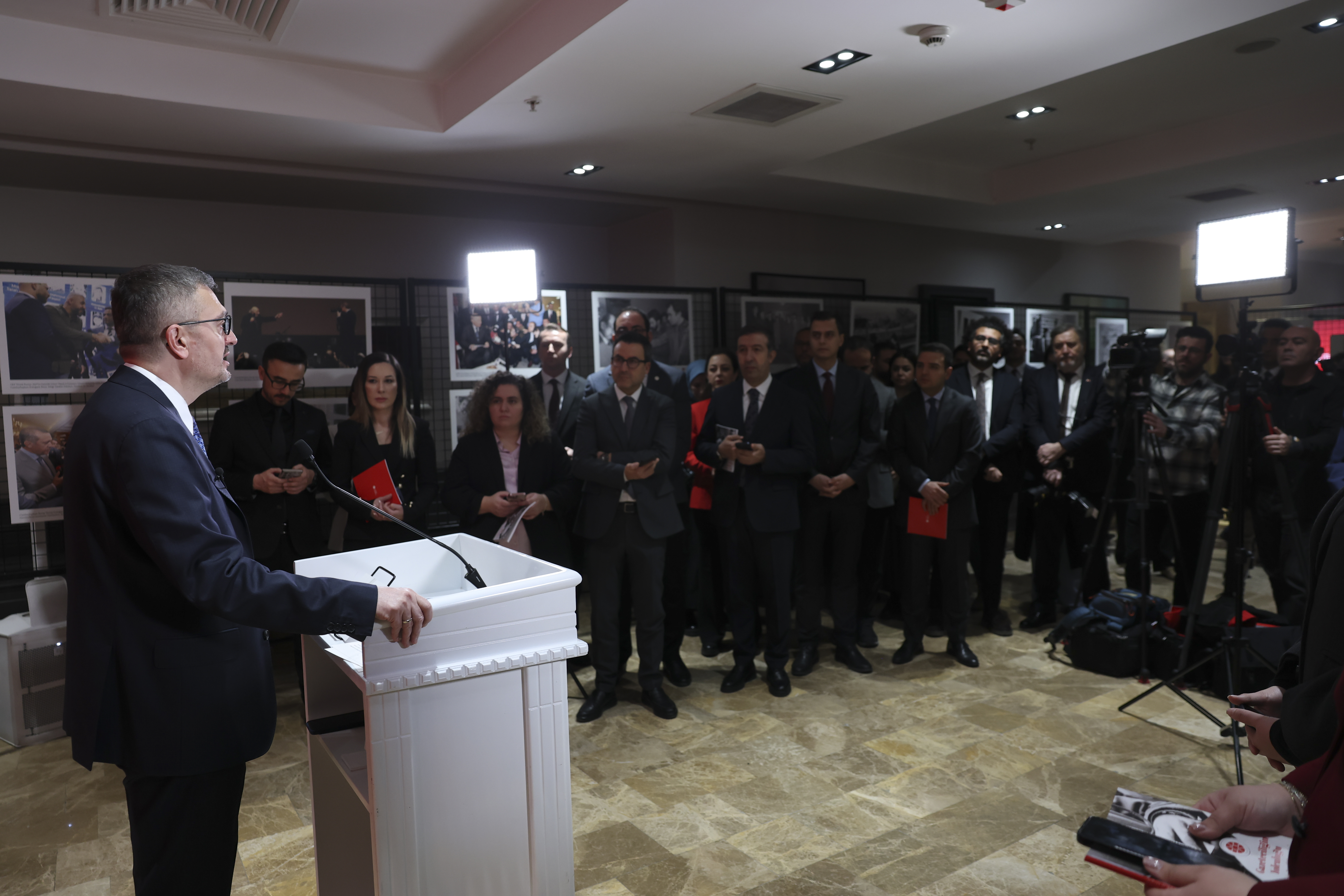 "Bugün sahada, masada, dijital mecralarda iz sürerek ulaştığı doğru bilgiyi kamuoyunun istifadesine sunan gazetecilerimize şükranlarımı sunuyorum. Her zaman için etik ve profesyonel kurallara göre hareket eden ve ömrünün önemli anlarını bu meslek uğrunda fedakarca ortaya koyan gazetecilerimiz, basın mensuplarımız vazgeçilmezdir. Serginin geçmişle bugün arasında güçlü bir bağ kurmasını, özellikle genç kuşaklar için tanıklık bilincini ve hakikat sorumluluğunu güçlendirmesini temenni ediyorum. Bu serginin hazırlanmasında çok sayıda arkadaşımın emeği geçti. Başta Anadolu Ajansı olmak üzere katkı sunan kurumlarımıza ve sergiyi hazırlayan arkadaşlarımıza teşekkür ediyorum."