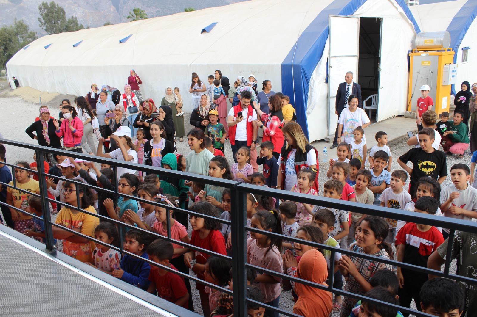 "Deprem Bölgesi Etkinlik Tırları Projesi" kapsamında depremzede çocukları sosyal yaşama adapte etmek ve afetin izlerini silmek için Modernevler Mahallesi'ndeki geçici barınma merkezinde program hazırlandı.