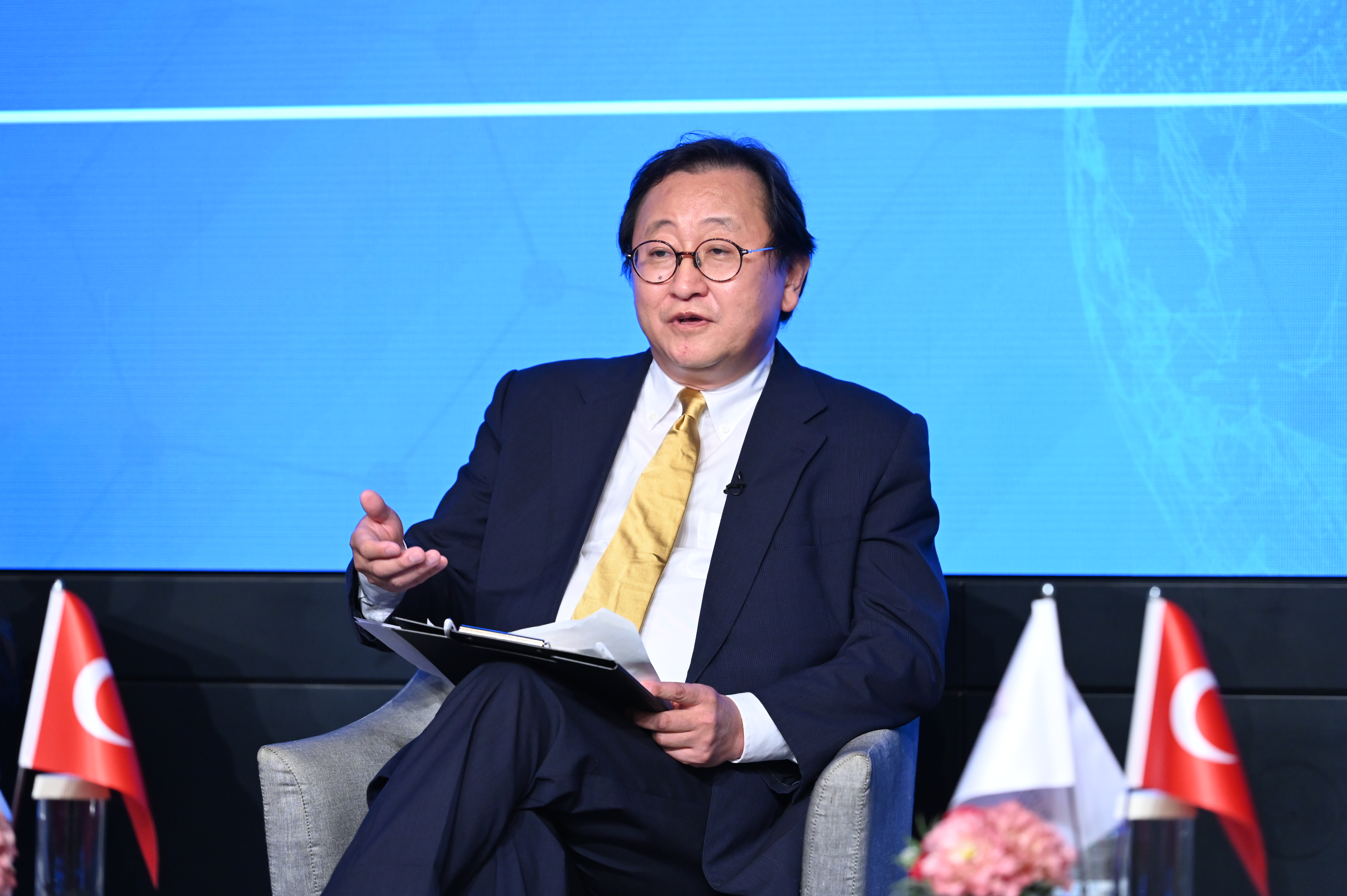 İletişim Başkanı Fahrettin Altun’un video mesajının ardından panelistlerden Shinyo Takahiro, Birleşmiş Milletler sisteminin pandemi, hastalıkların yayılması ve yoksulluğun hafifletilmesi gibi konularda başarıları olduğunu; UNESCO, UNDP, UNHCR gibi bağlı kuruluşların önem taşıdığını ancak BM Güvenlik Konseyi hakkında önemli tartışmalar olduğunu ifade ederek sözlerine başladı. BMGK’nin güvenilirlik krizi yaşadığını dile getiren Takahiro. BMGK reformunun amacının Konseyin yapısında değişiklik yapılmasının faydalı olacağını dile getirdi. Takahiro, BMGK’ne seçilen daimi olmayan üyelerin görev sürelerinin artırılarak “yarı-daimi” üyeler benzeri bir statünün oluşturulması konusunu tartışmaya açtı. Takahiro, uzun vadeli bir perspektifte BMGK daimi üyelerinin de değişebileceğini belirterek sözlerini sonlandırdı.