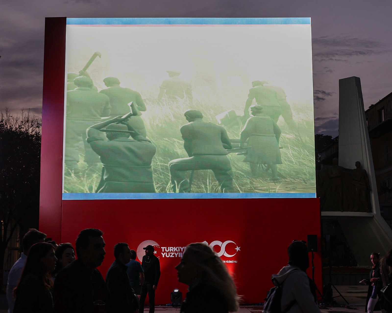 Bakırköy Özgürlük Meydanı'nda kurulan dev ekranda da Cumhuriyet'in 100. yılına özel görsel içerikler vatandaşlara aktarıldı. Üç boyutlu izlenebilen sunumu bazı vatandaşlar cep telefonlarıyla kaydetti. Bazı vatandaşlar görüntüleri izlerken duygu dolu anlar yaşayarak, alkışladı.