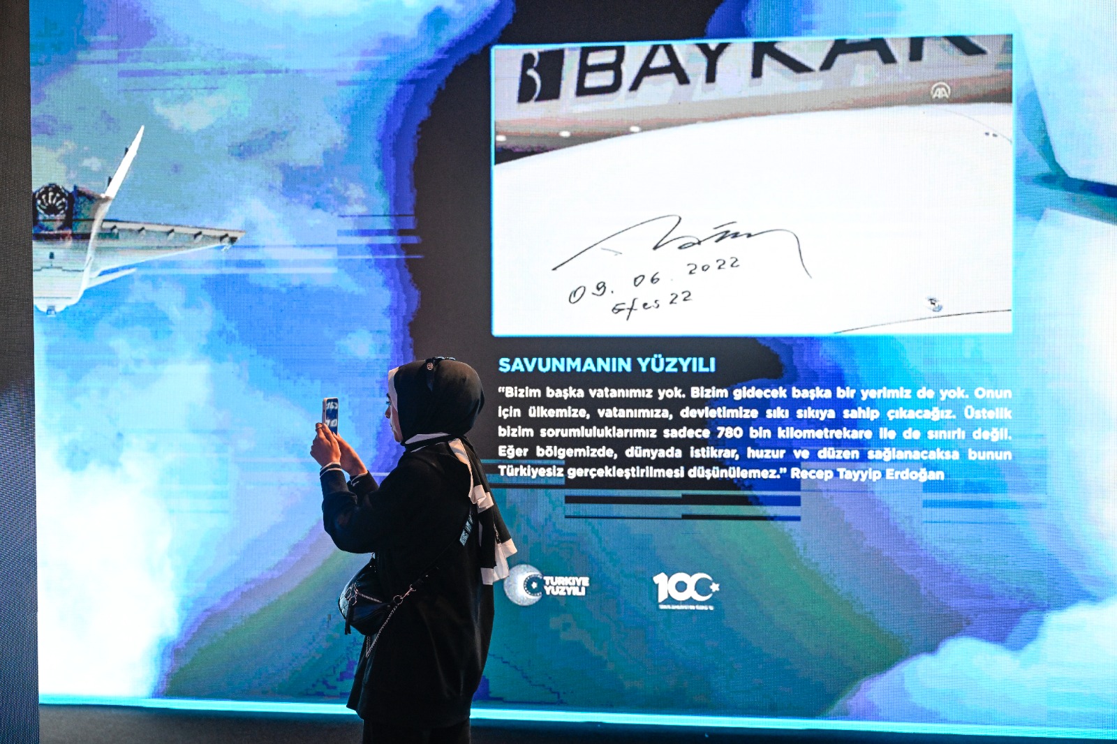 Sergideki dijital ekranlarda, "Huzurun yüzyılı", "Ulaştırmanın yüzyılı", "Eğitimin yüzyılı", "Üretimin yüzyılı", "Gücün yüzyılı", "Savunmanın yüzyılı", "Bilimin yüzyılı", "Enerjinin yüzyılı", "Şefkatin yüzyılı" ve "Sağlığın yüzyılı" ile "Togg kilometre taşları" ve "Maziden Atiye" konularında gösterim yapılıyor.