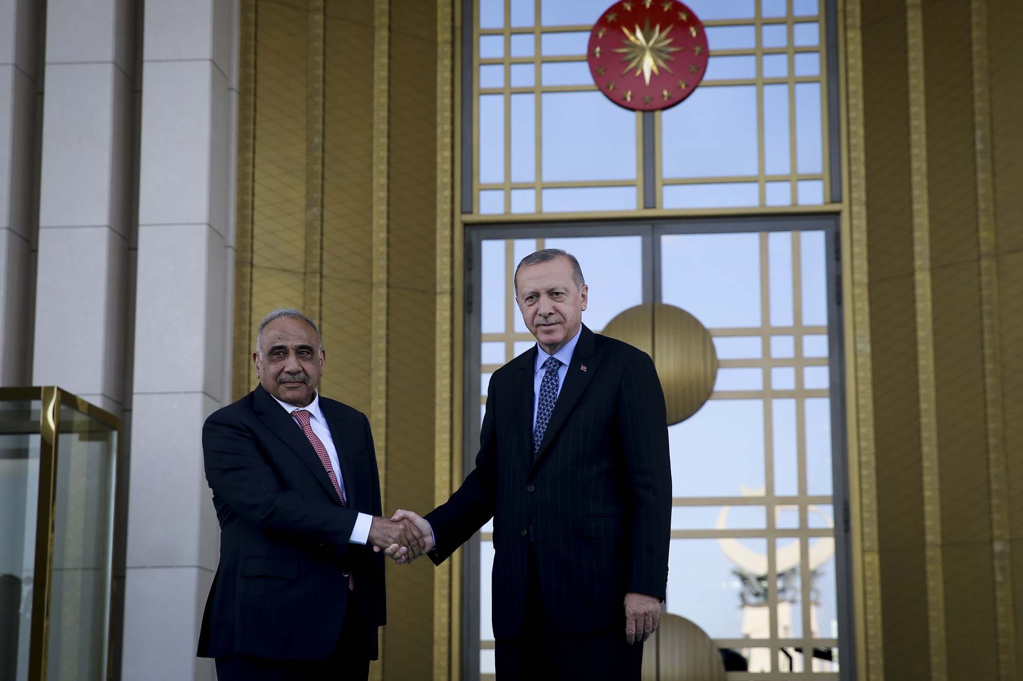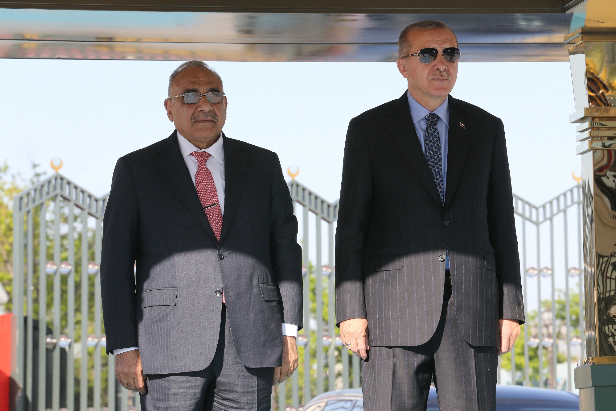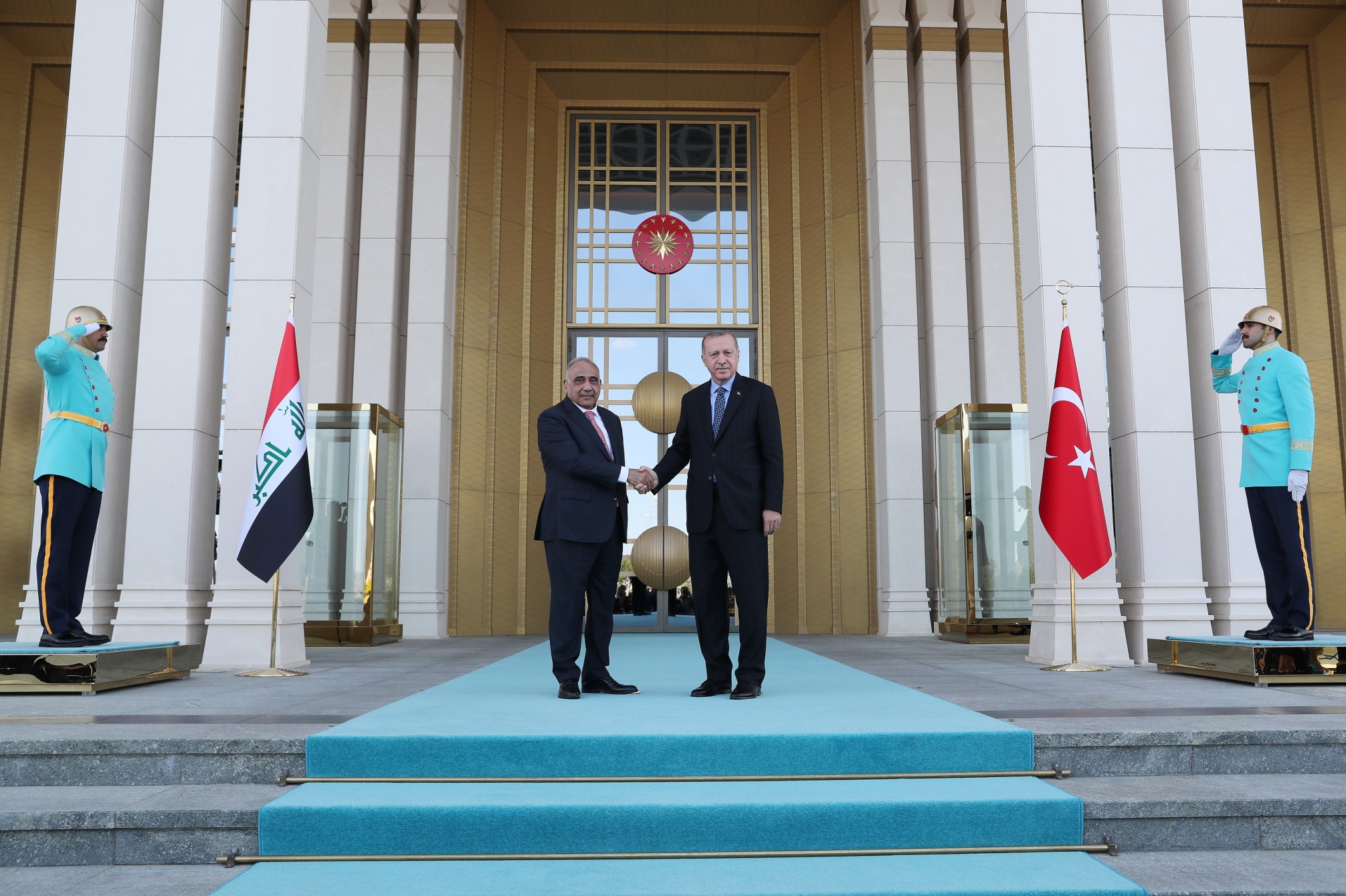Cumhurbaşkanı Erdoğan, Abdulmehdi'yi Cumhurbaşkanlığı Külliyesi'nin ana giriş kapısında karşıladı. Erdoğan ve Abdulmehdi'nin tören alanındaki yerlerini almalarının ardından, 21 pare top atışı eşliğinde iki ülkenin milli marşları çalındı.
