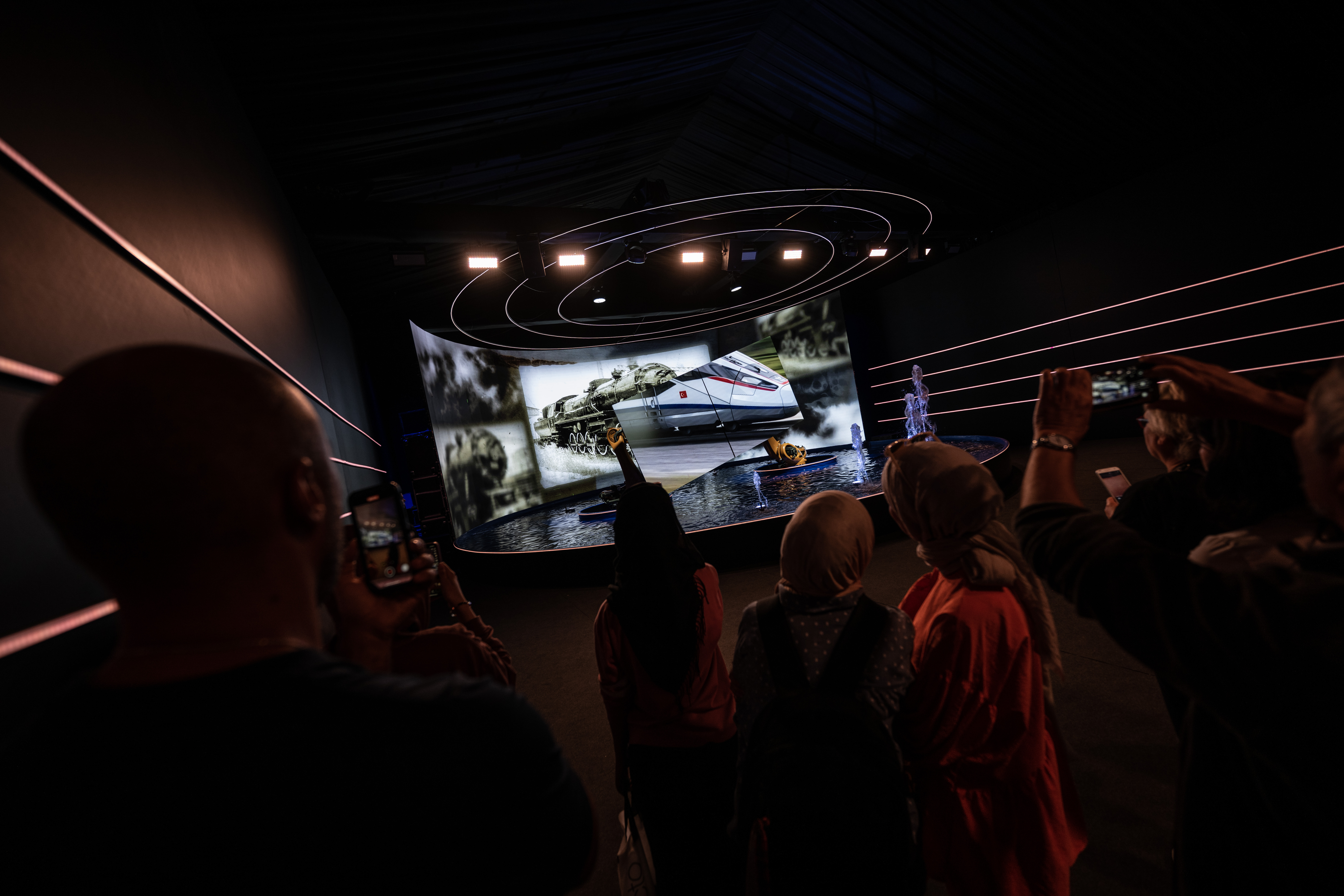 Sergide yer alan dijital ekranlardan, "Huzurun yüzyılı", "Ulaştırmanın yüzyılı", "Eğitimin yüzyılı", "Üretimin yüzyılı", "Gücün yüzyılı", "Savunmanın yüzyılı", "Bilimin yüzyılı", "Enerjinin yüzyılı", "Şefkatin yüzyılı" ve "Sağlığın yüzyılı" ile "Togg kilometre taşları" ve "Maziden Atiye" konulu gösterimler yansıtılıyor.