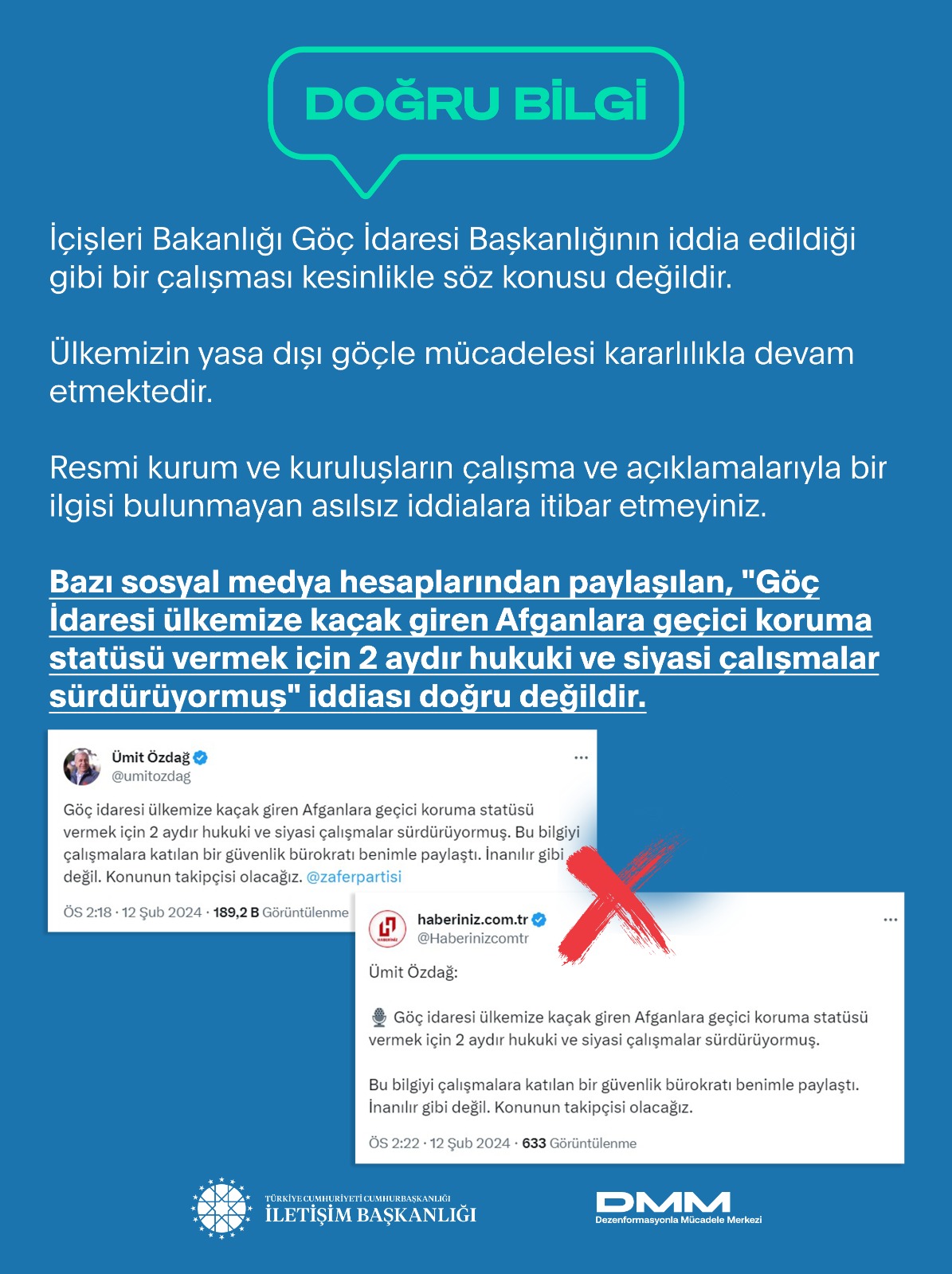 Bazı sosyal medya hesaplarından paylaşılan, "Göç İdaresi ülkemize kaçak giren Afganlara geçici koruma statüsü vermek için 2 aydır hukuki ve siyasi çalışmalar sürdürüyormuş" iddiası doğru değildir.