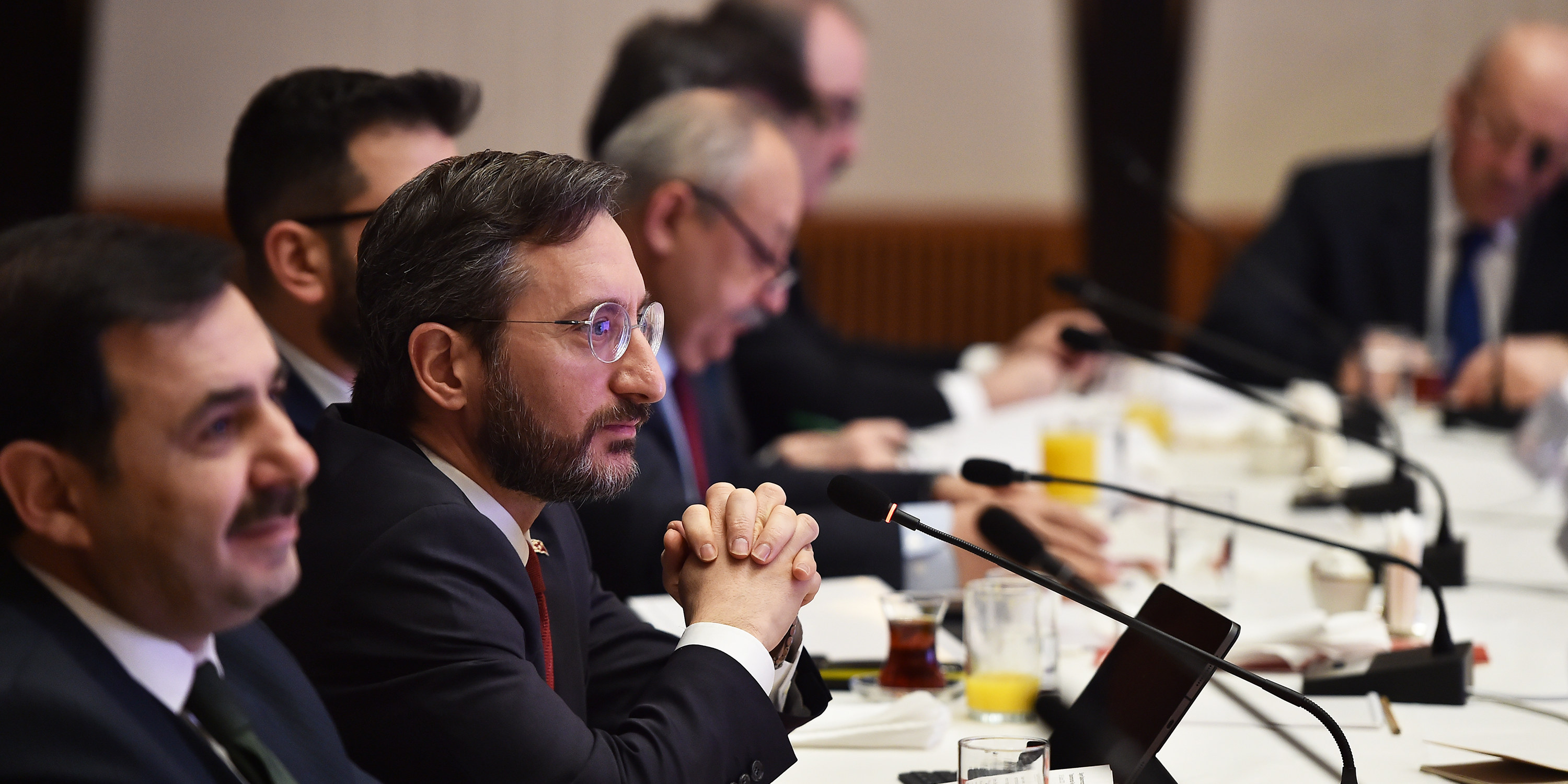 İletişim Başkanı Fahrettin Altun'un başkanlık ettiği toplantı, bütün bakanlıklar ile ilgili kamu kurum ve kuruluşlarının katılımıyla Cumhurbaşkanlığı Külliyesi'nde yapıldı.
