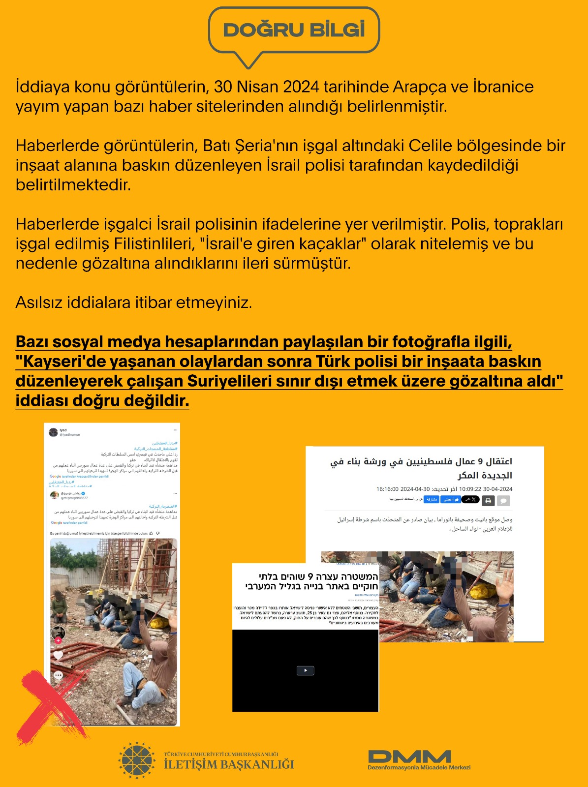 İddiaya konu görüntülerin, 30 Nisan 2024 tarihinde Arapça ve İbranice yayım yapan bazı haber sitelerinden alındığı belirlenmiştir.