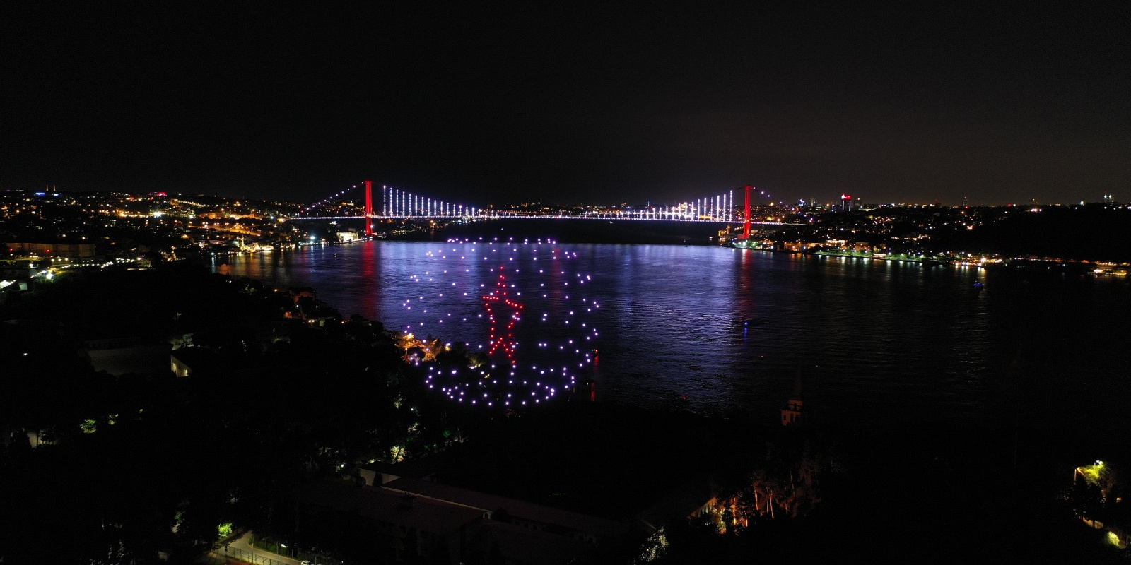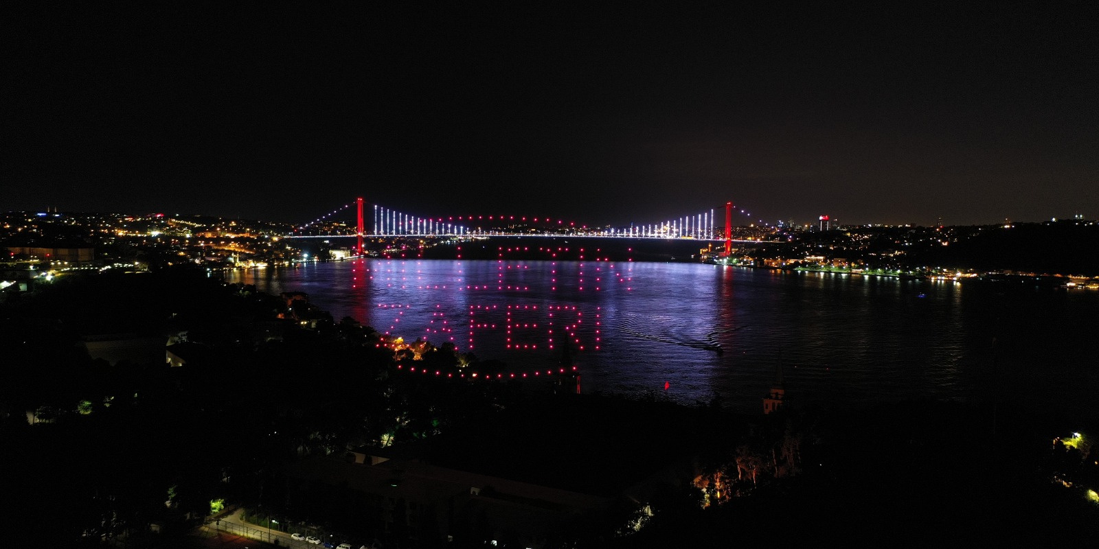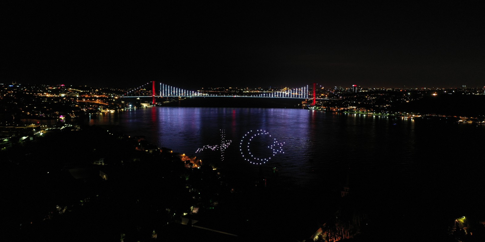 Türk milletinin, Fetullahçı Terör Örgütü'nün (FETÖ) 4 yıl önceki hain darbe girişimine karşı elde ettiği zafer, 200 drone ile gerçekleştirilen "15 Temmuz temalı ışık gösterisi"yle İstanbul Boğazı'na yansıdı.