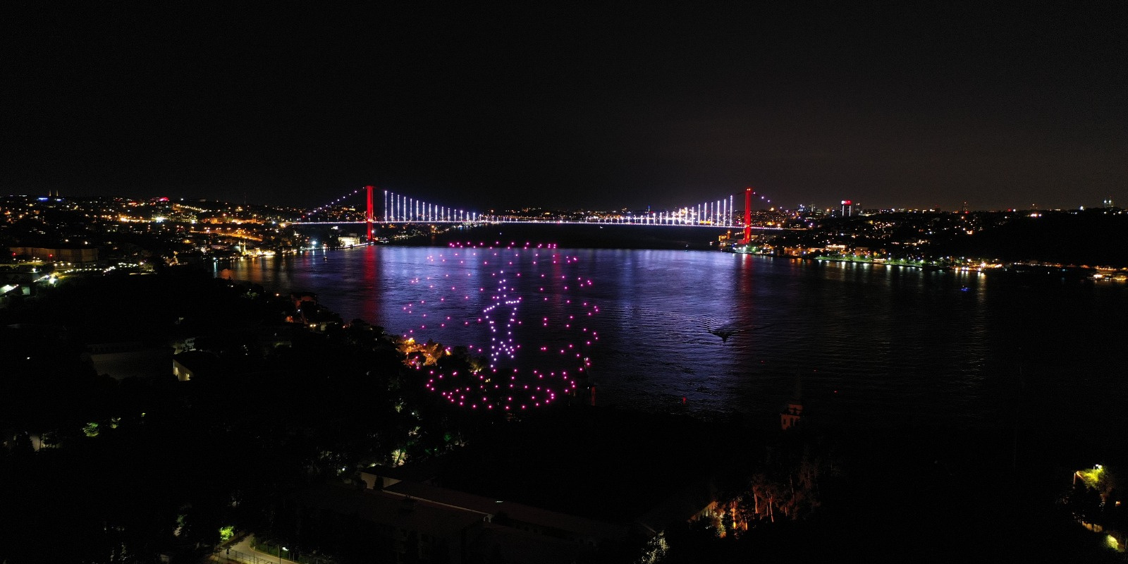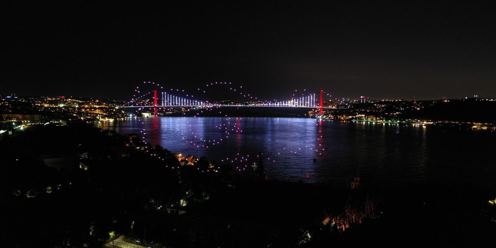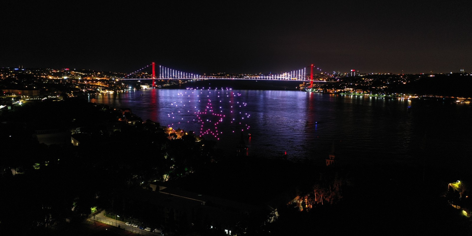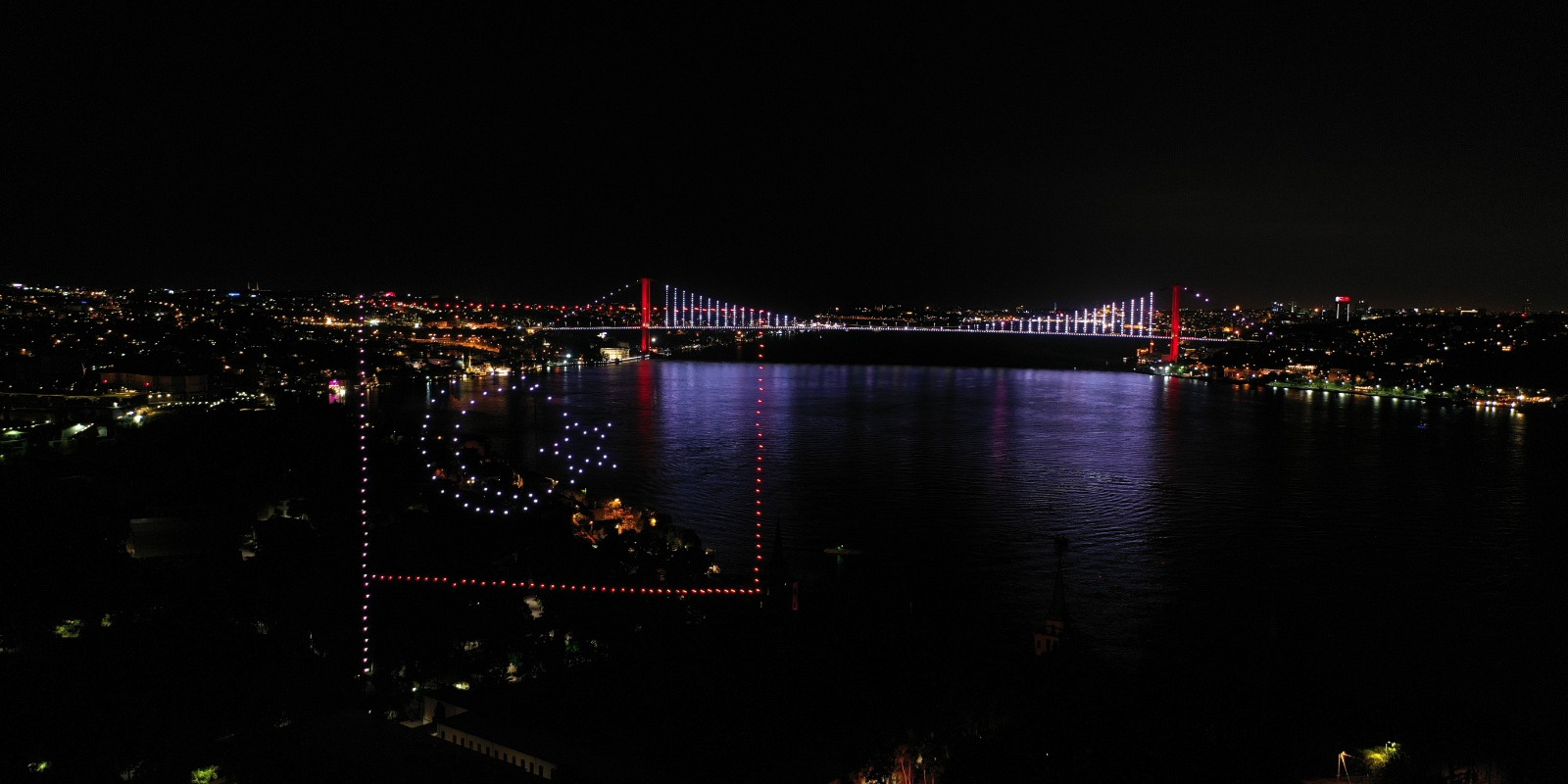 Türk milletinin, Fetullahçı Terör Örgütü'nün (FETÖ) 4 yıl önceki hain darbe girişimine karşı elde ettiği zafer, 200 drone ile gerçekleştirilen "15 Temmuz temalı ışık gösterisi"yle İstanbul Boğazı'na yansıdı.