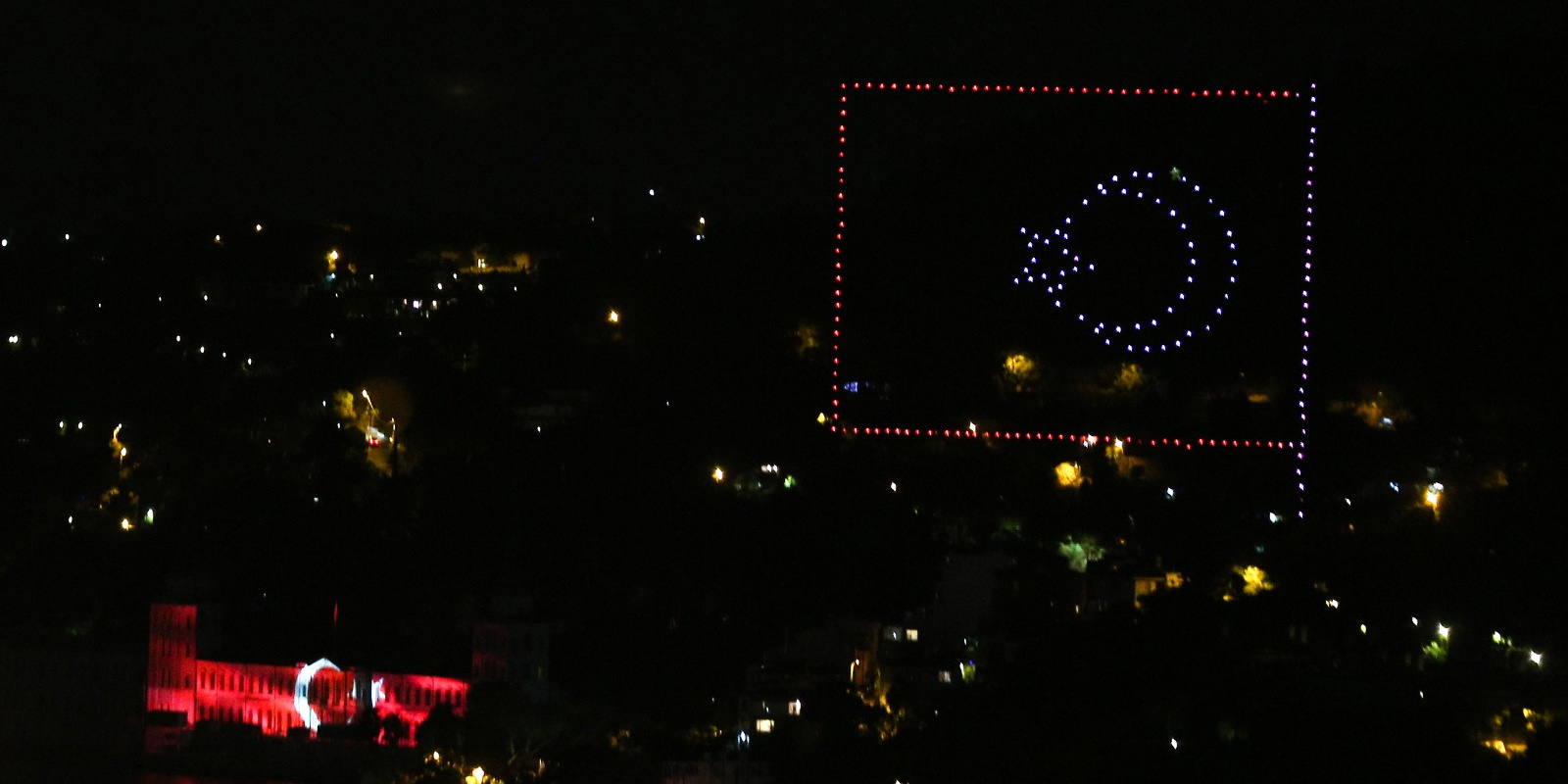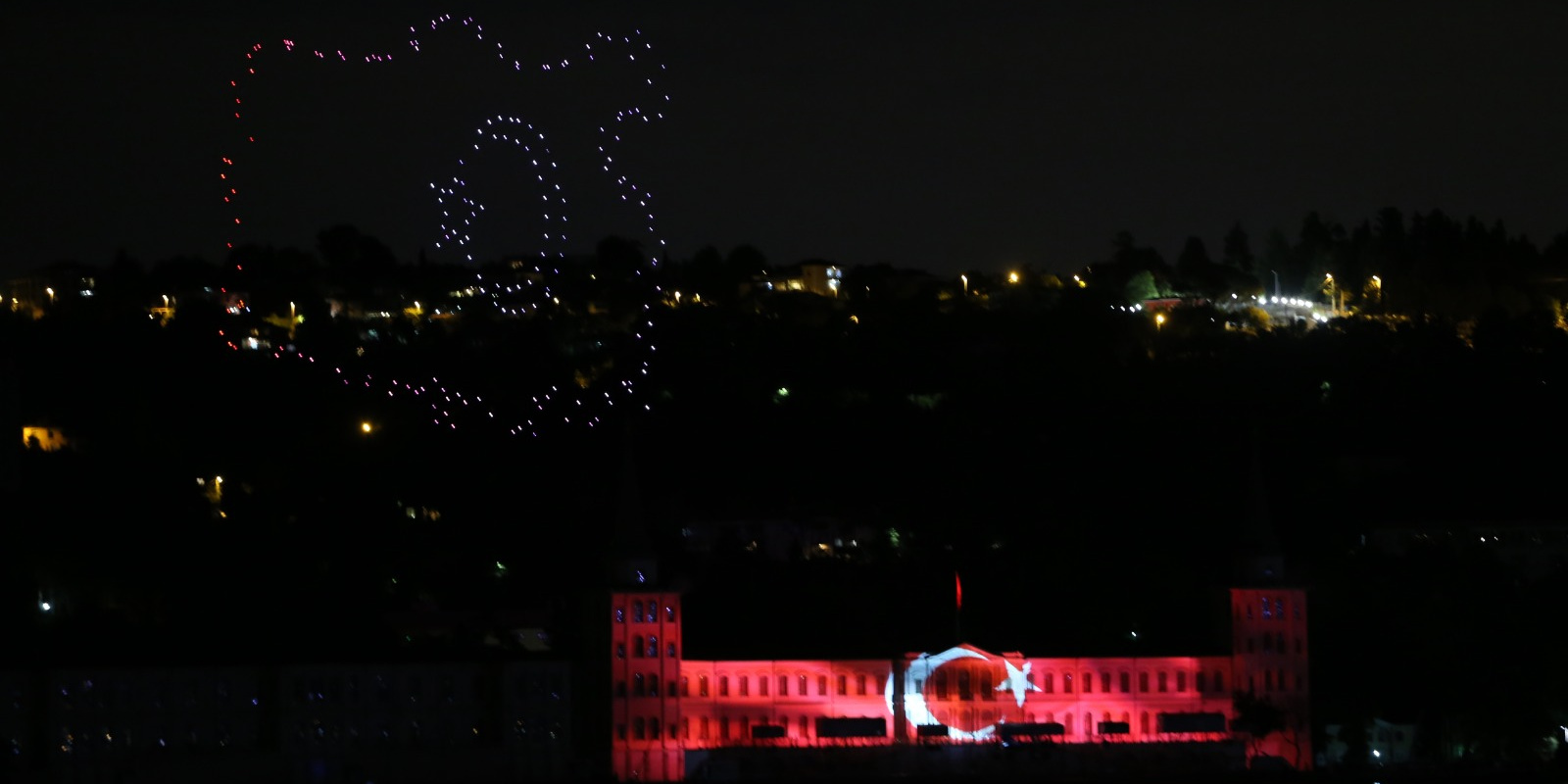 Kuleli yerleşkesi üzerinde gerçekleştirilen gösteri, İstanbul semalarını ve boğazı aydınlattı.