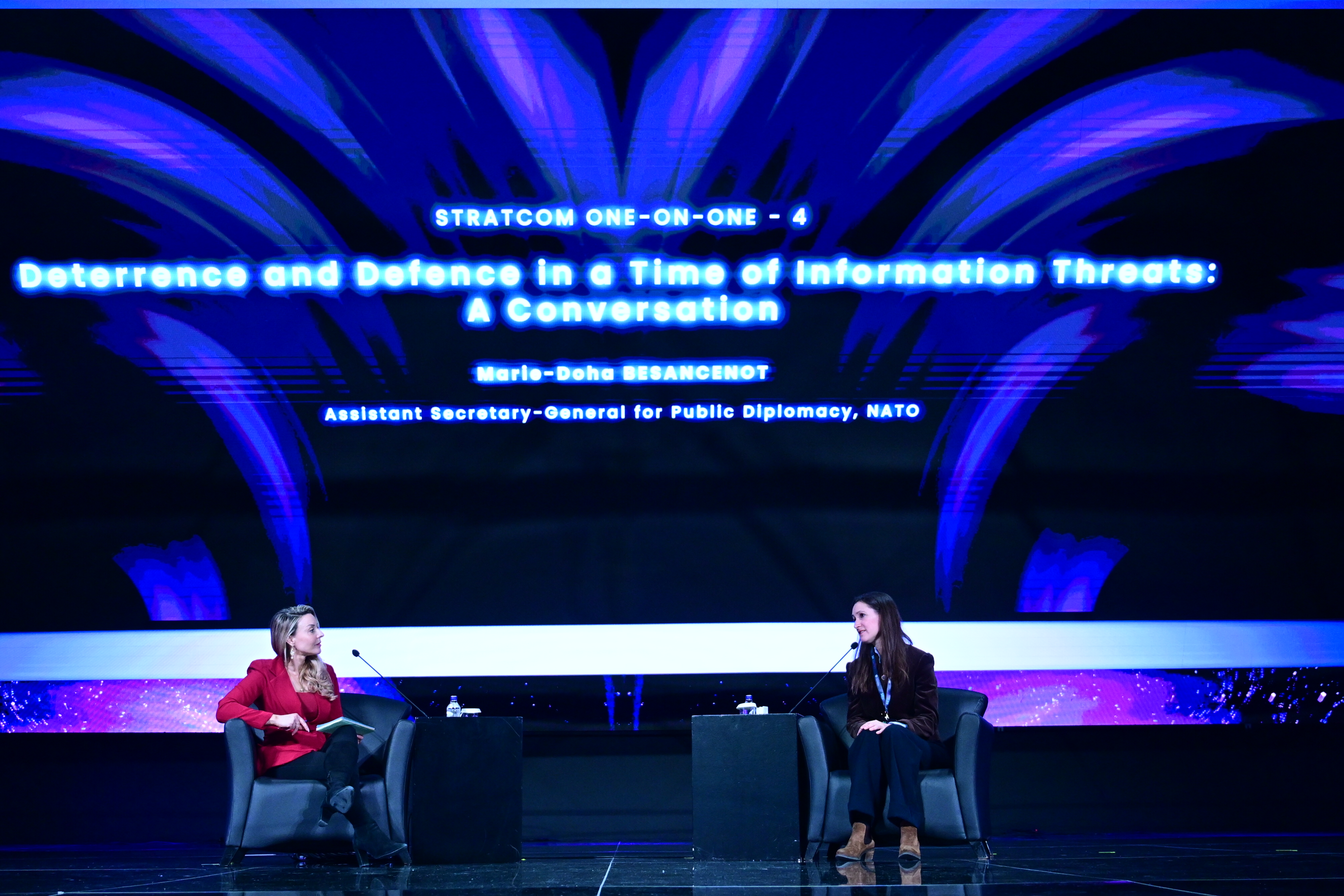 Program, video mesajların ardından BBC haber spikeri ve muhabiri Louisa Pilbeam moderatörlüğünde, NATO Kamu Diplomasisinden Sorumlu Genel Sekreter Yardımcısı Marie-Doha Besancenot ile "Bilgi Çağında Tehditlere Karşı Caydırıcılık ve Savunma: NATO ile Bir Söyleşi" başlıklı oturumla devam etti.
