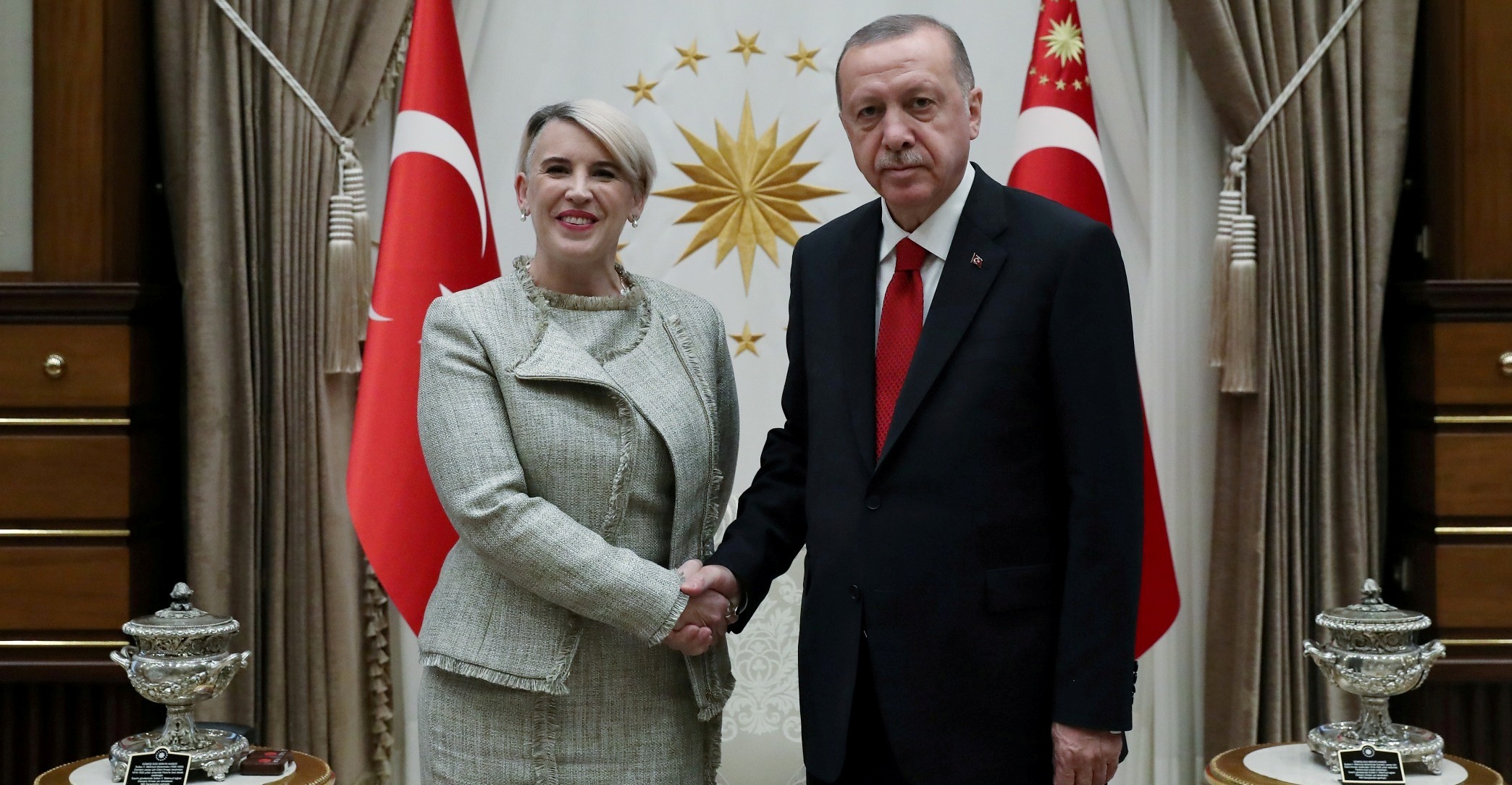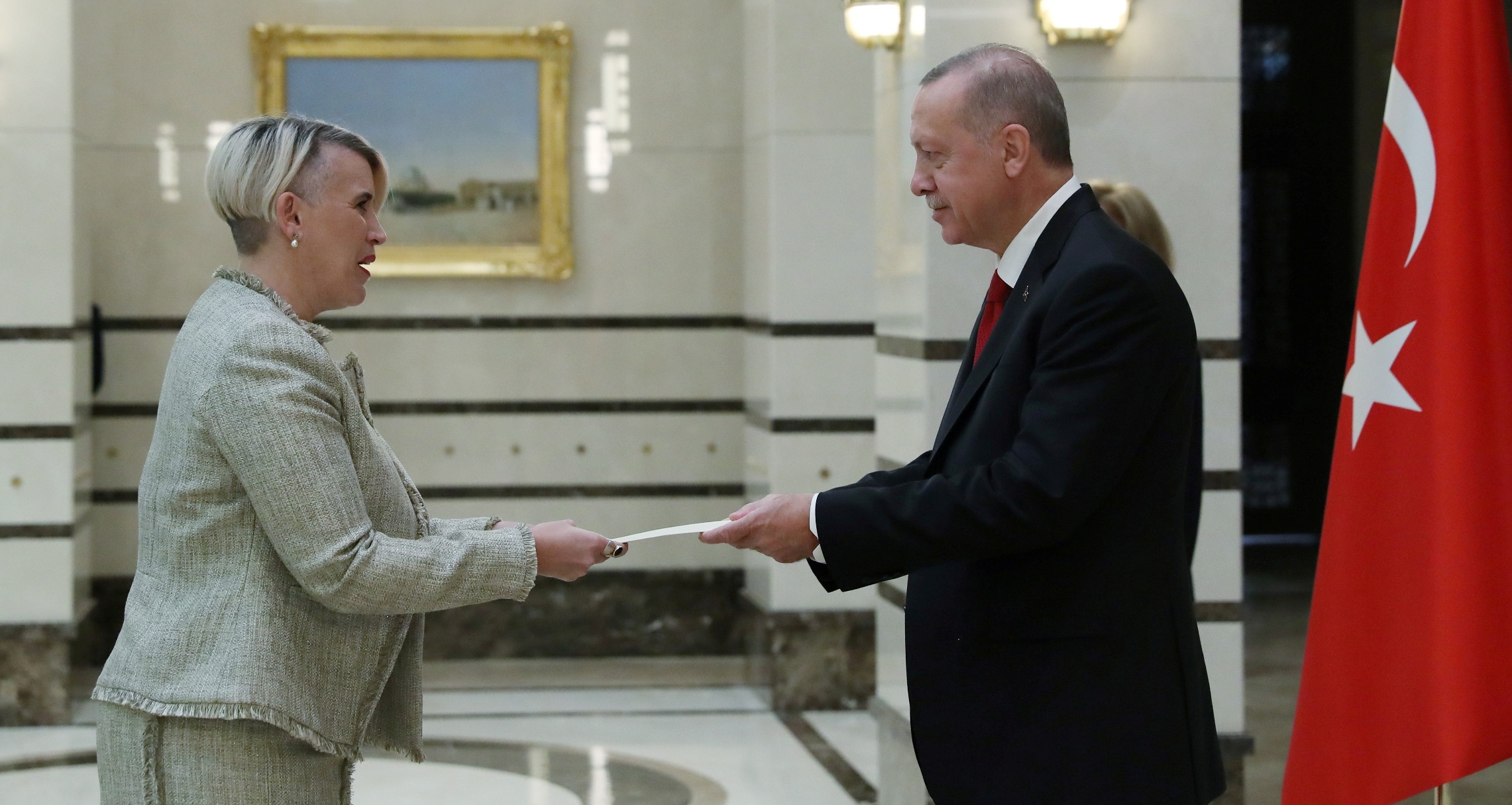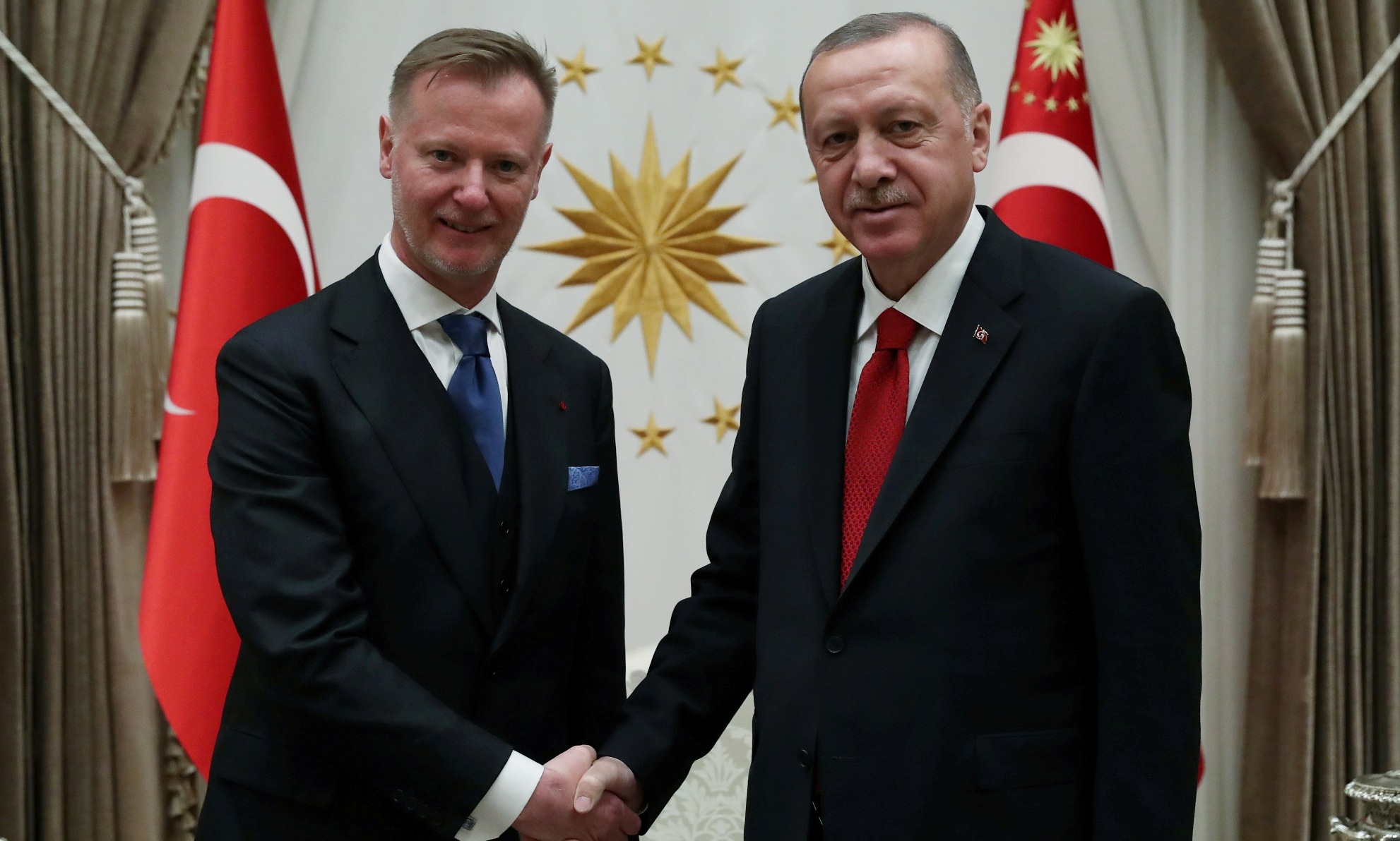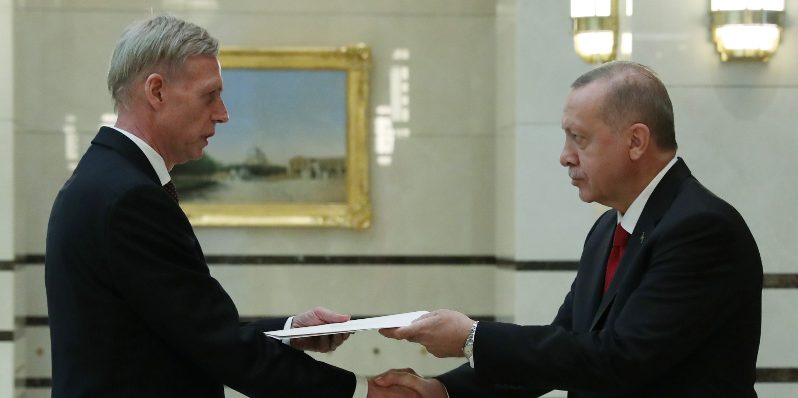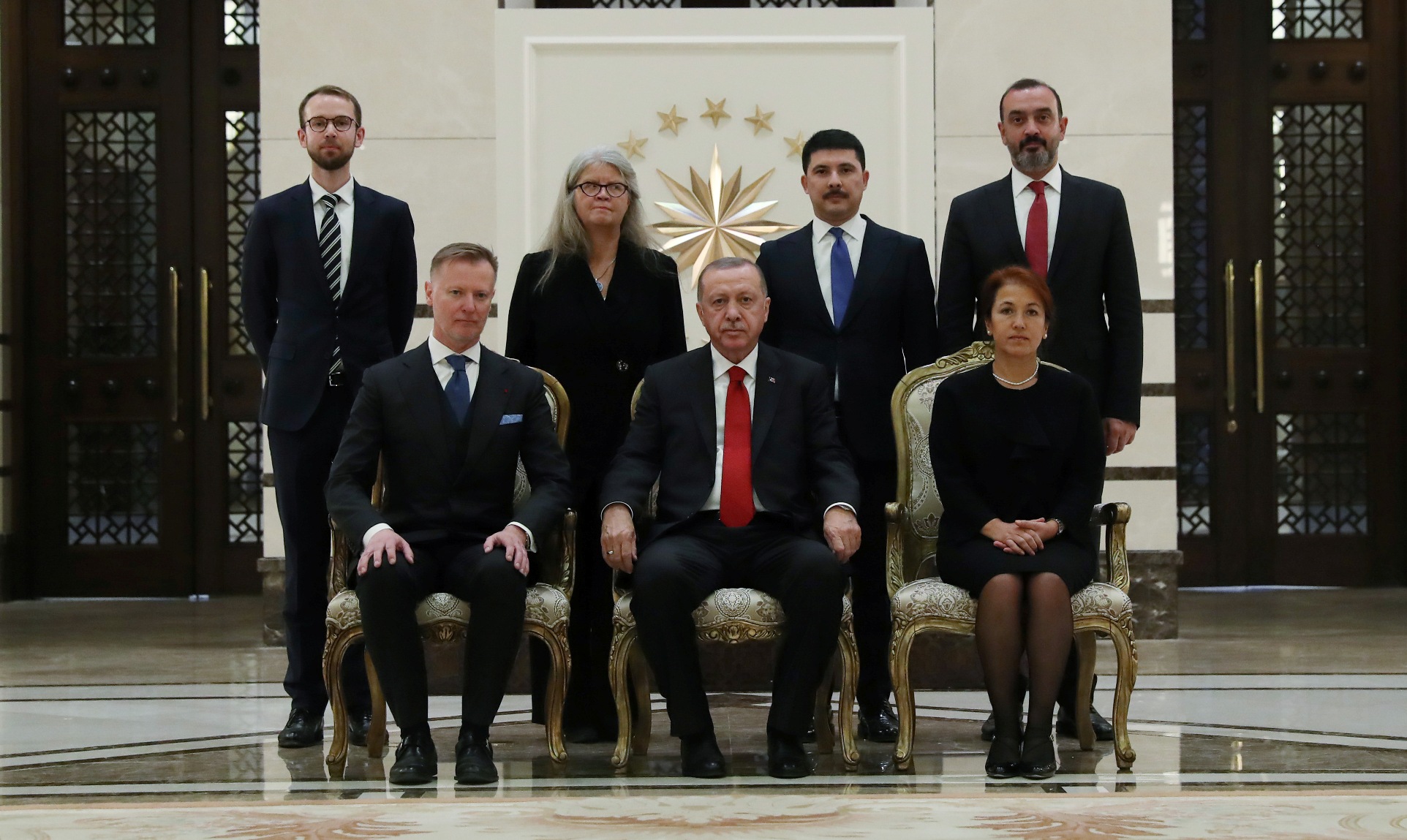 Cumhurbaşkanlığı Külliyesi'nde gerçekleştirilen kabullerde, Norveç'in Ankara Büyükelçisi Erling Skjonsberg, İrlanda'nın Ankara Büyükelçisi Sonya Mcguıness ve Finlandiya'nın Ankara Büyükelçisi Ari Maki, Cumhurbaşkanı Erdoğan'a güven mektubu sundu.