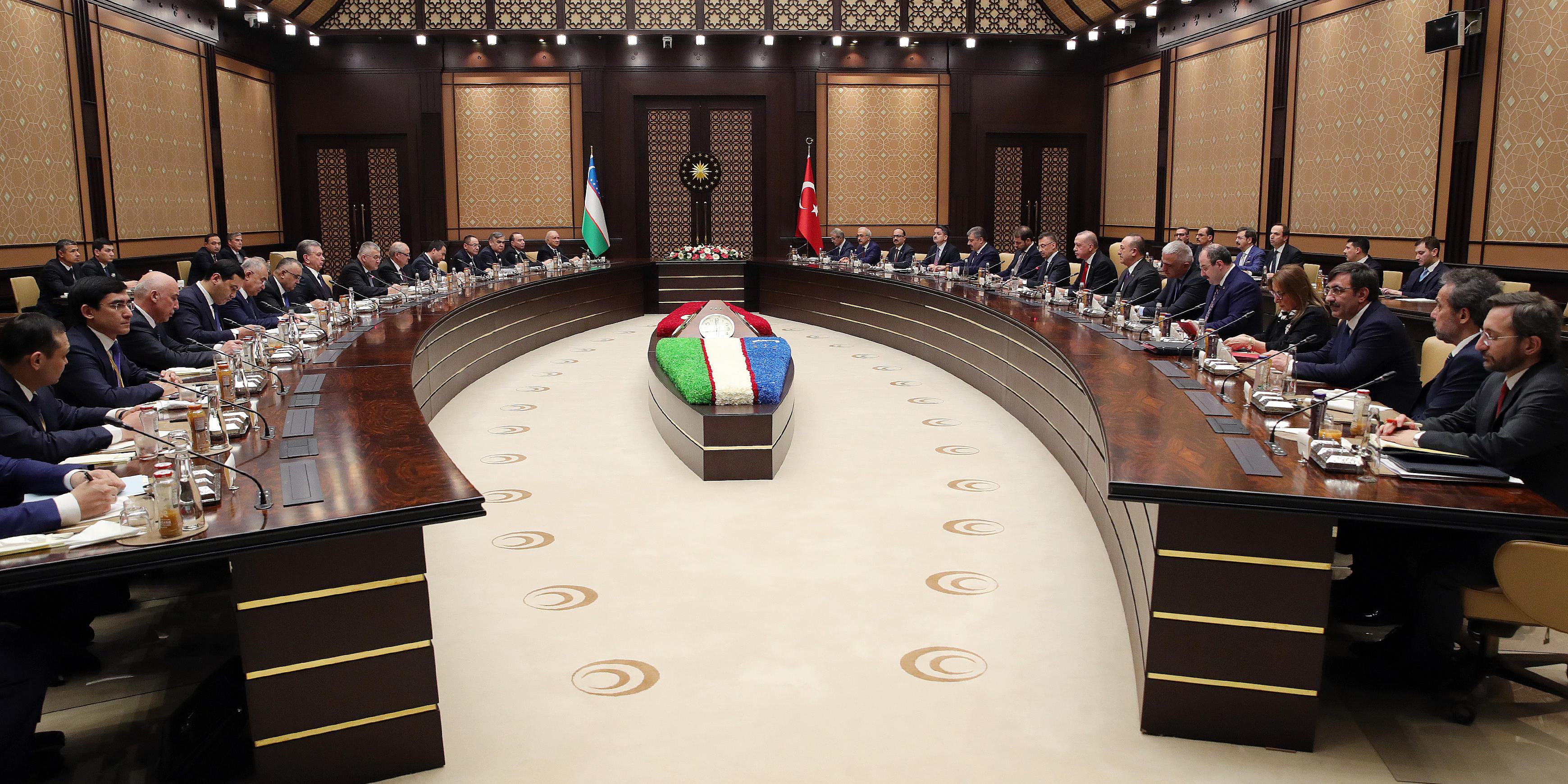 Cumhurbaşkanı Erdoğan daha sonra Özbekistan Cumhurbaşkanı Şevket Mirziyoyev ile Yüksek Düzeyli Stratejik Konsey Toplantısına katıldı.