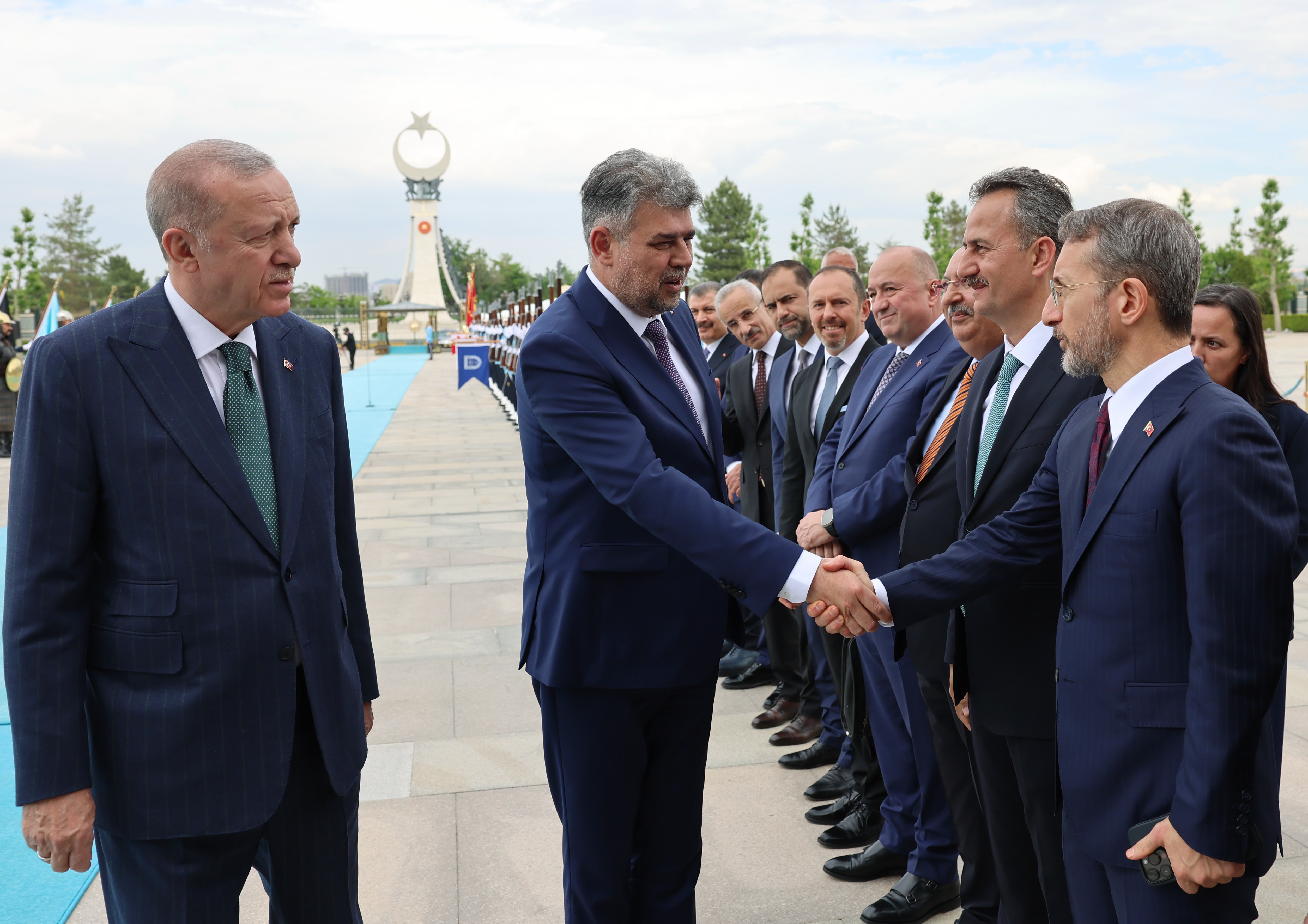 Cumhurbaşkanı Recep Tayyip Erdoğan, Romanya Başbakanı Ciolacu'yu resmî törenle karşıladı.