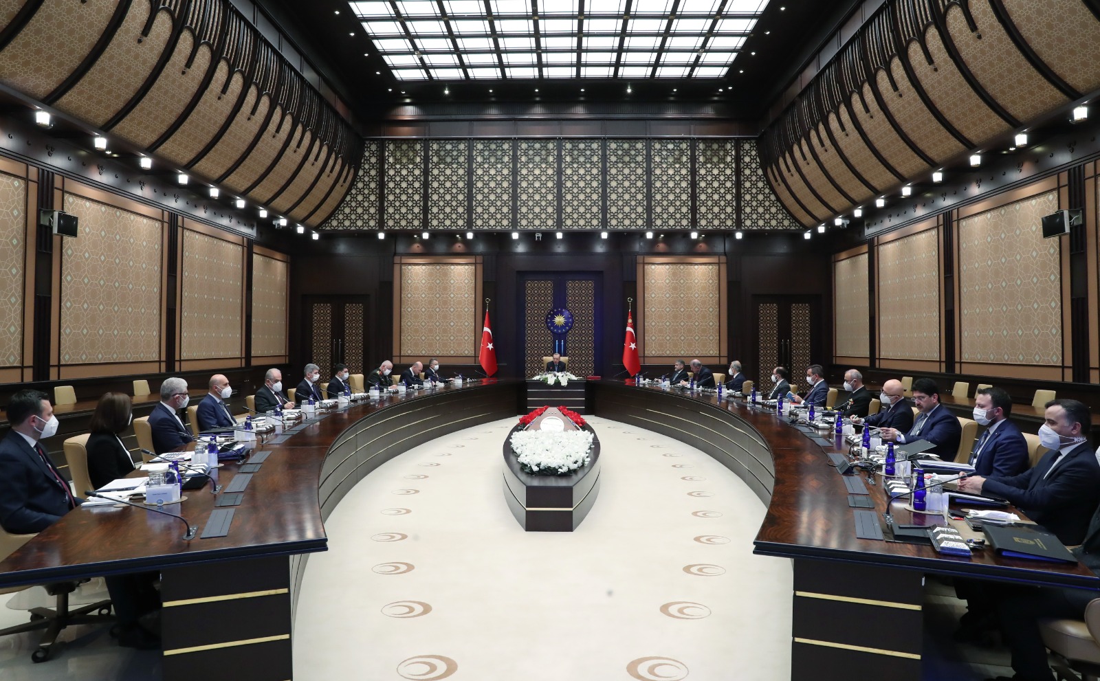 Toplantıda, Cumhurbaşkanı Yardımcısı Fuat Oktay, Hazine ve Maliye Bakanı Nureddin Nebati, İçişleri Bakanı Süleyman Soylu, Milli Savunma Bakanı Hulusi Akar, Genelkurmay Başkanı Orgeneral Yaşar Güler, Savunma Sanayii Başkanı İsmail Demir ve Cumhurbaşkanlığı Özel Kalem Müdürü Hasan Doğan da yer aldı.