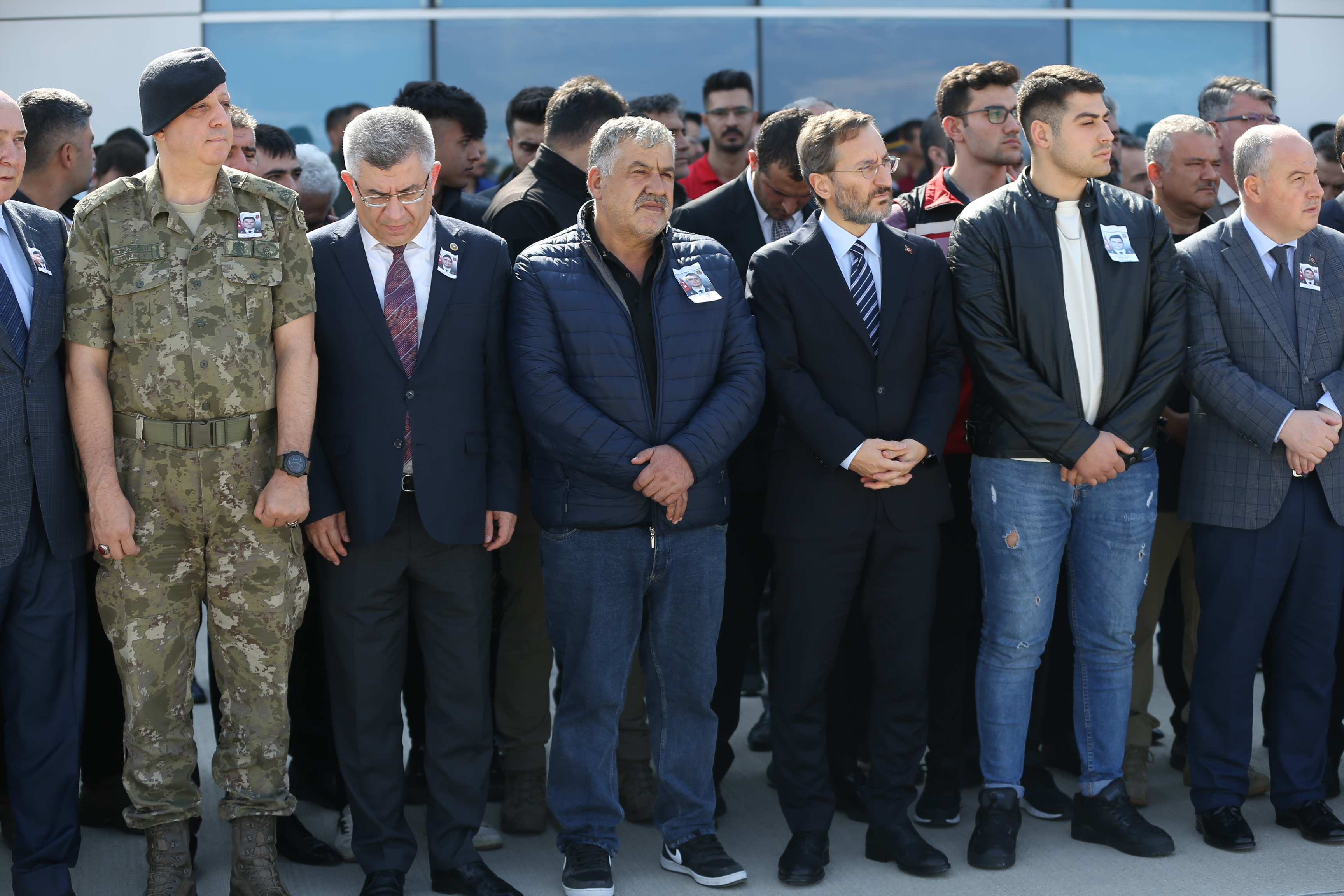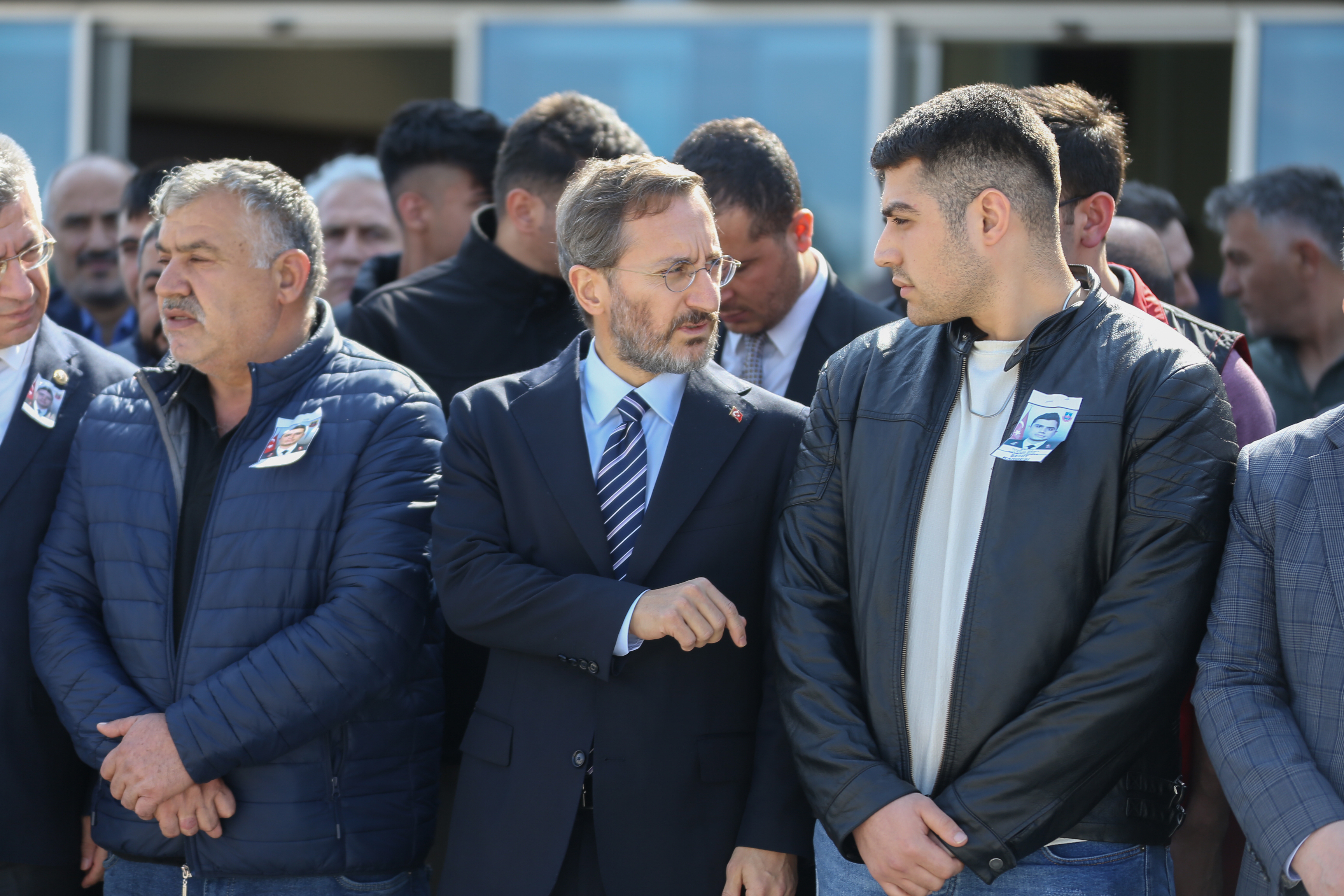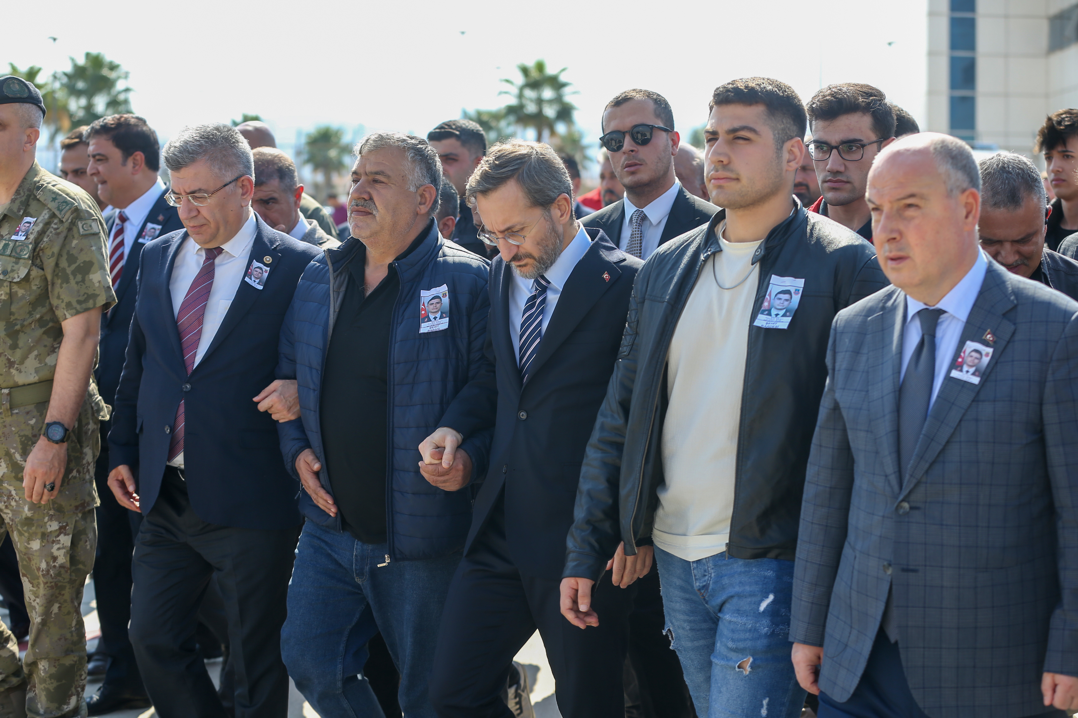 Törene katılan Cumhurbaşkanlığı İletişim Başkanı Fahrettin Altun, koluna girdiği şehit babası Şahap Sert'i teselli etmeye çalıştı.