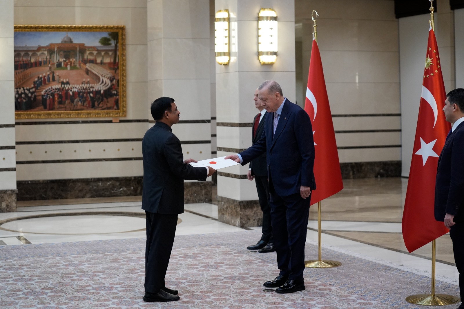 Cumhurbaşkanlığı Külliyesi'ndeki kabulde, büyükelçiler, Cumhurbaşkanı Erdoğan'a güven mektuplarını sundu.