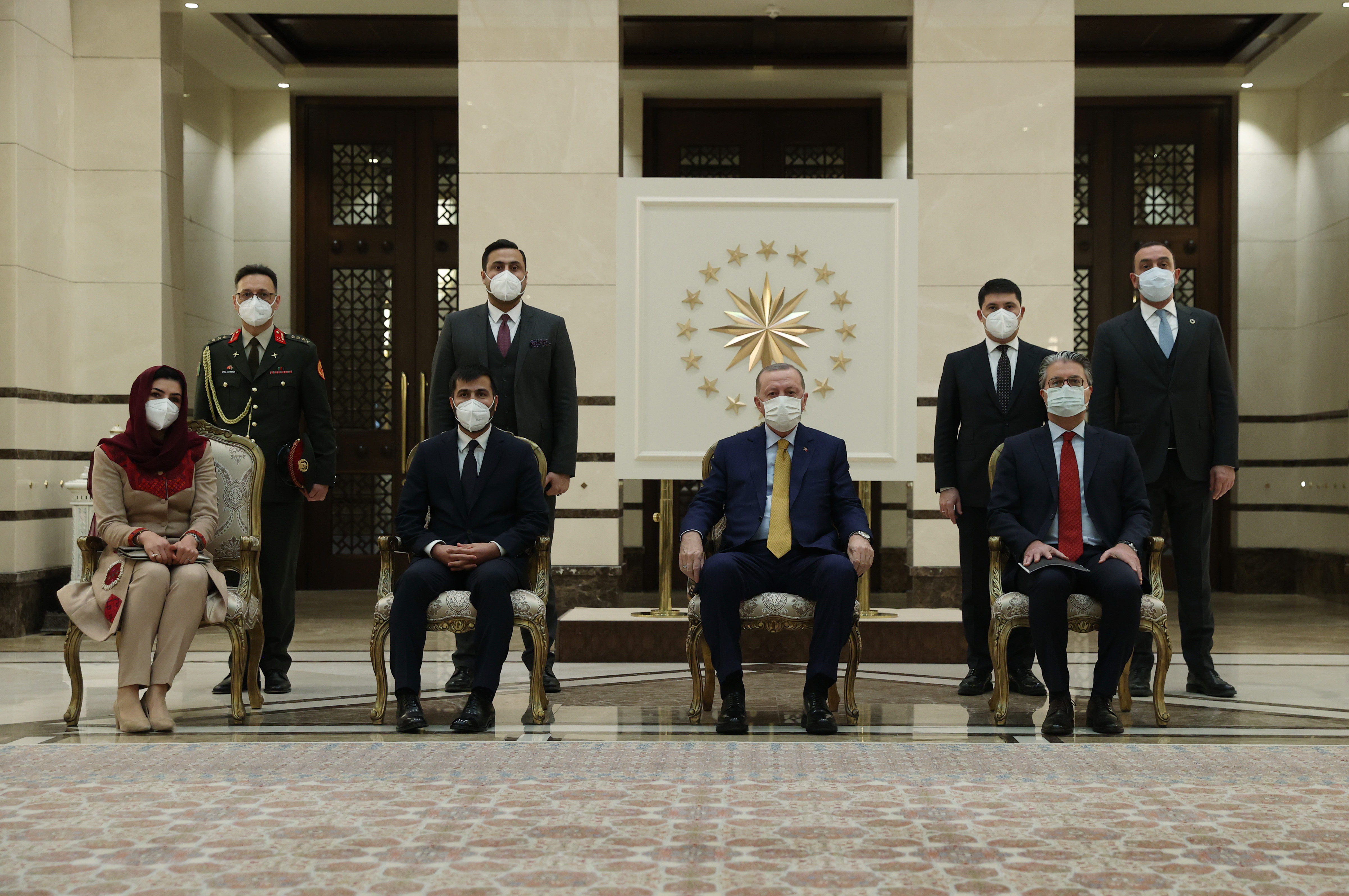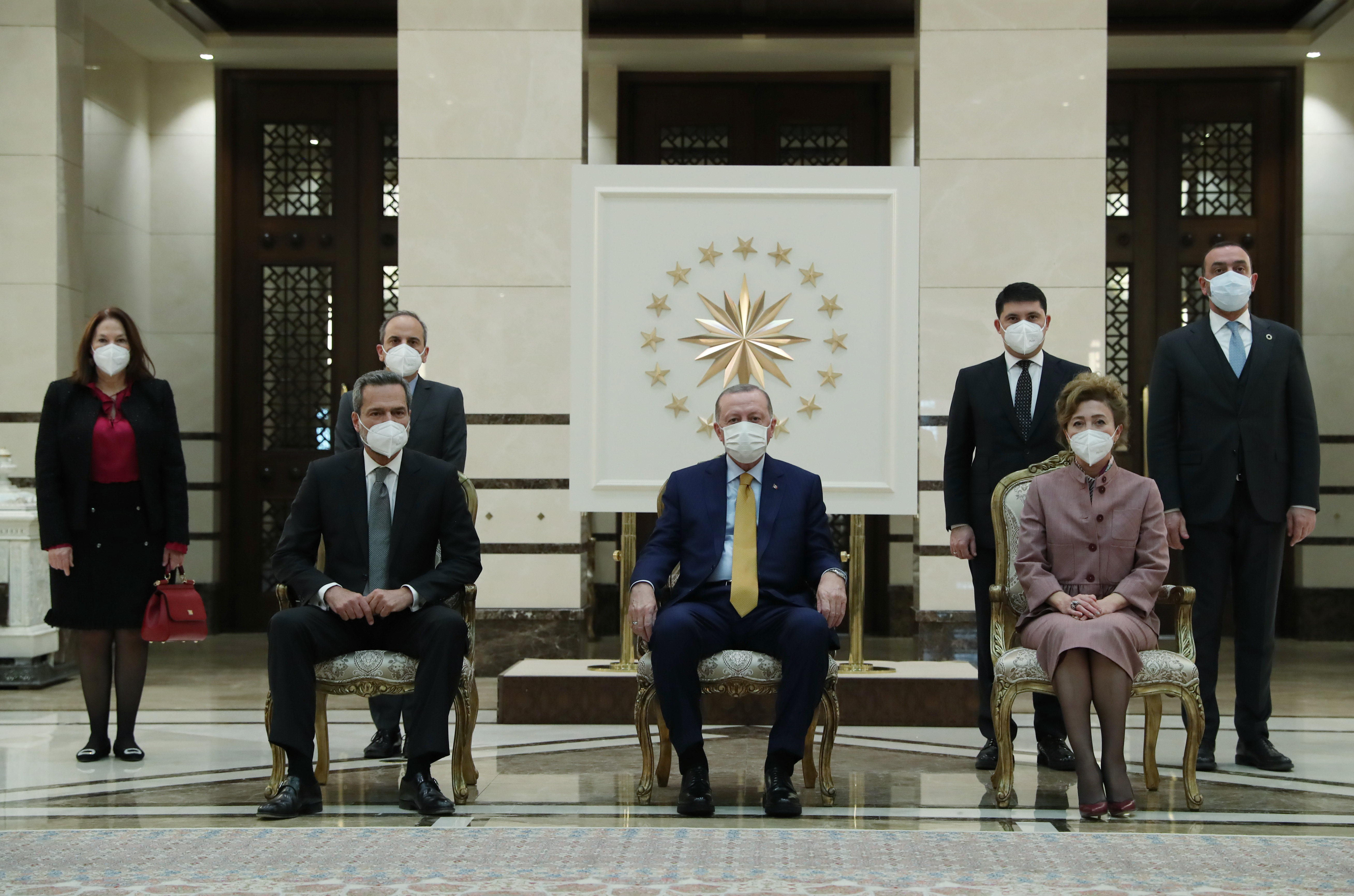 Büyükelçilerin aileleri ve bazı büyükelçilik mensuplarının Cumhurbaşkanı Erdoğan’a takdim edilmesinin ardından hatıra fotoğrafı çektirildi.