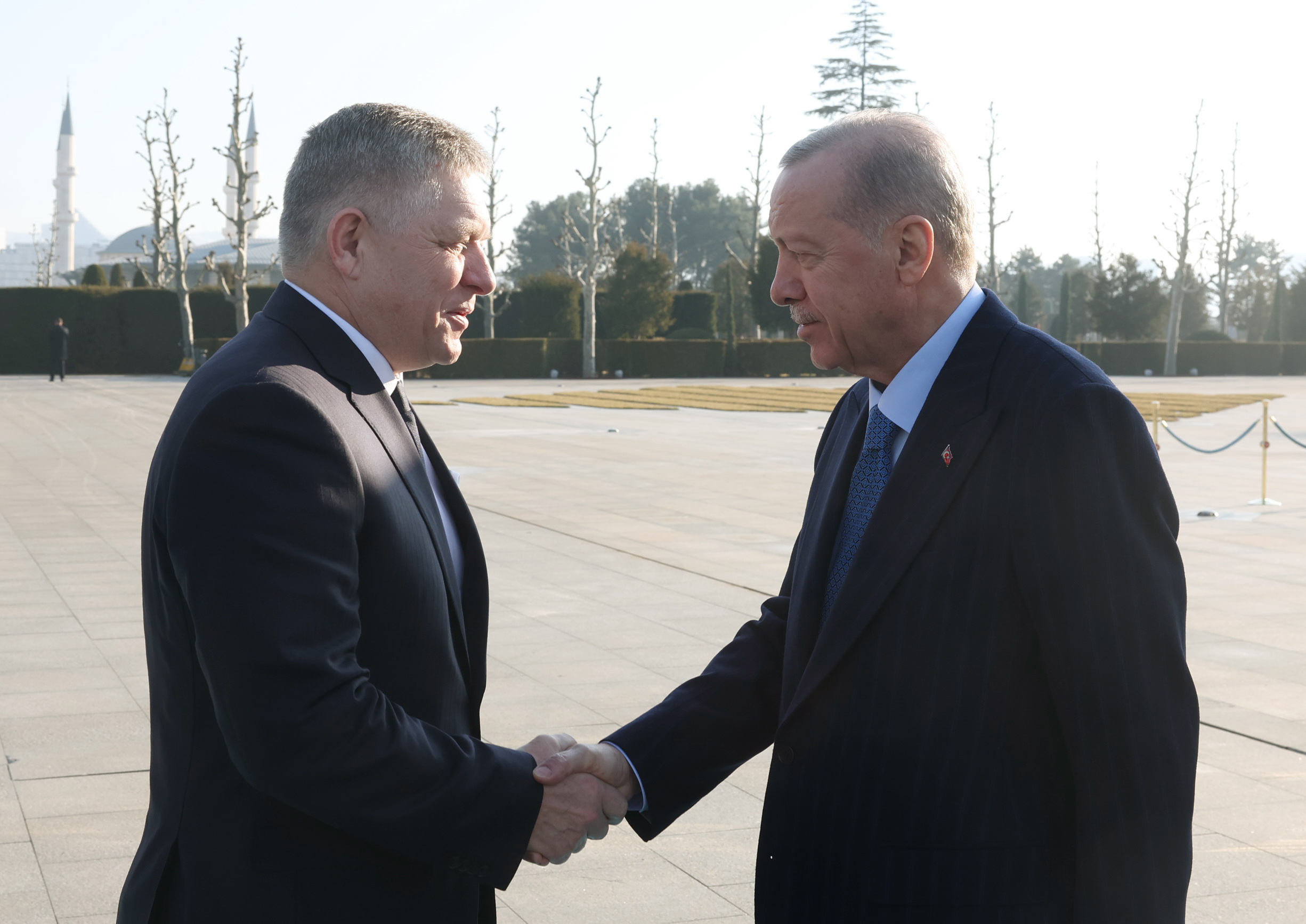 Cumhurbaşkanı Erdoğan, Slovakya Başbakanı Fico'yu, külliyenin ana giriş kapısında karşıladı.