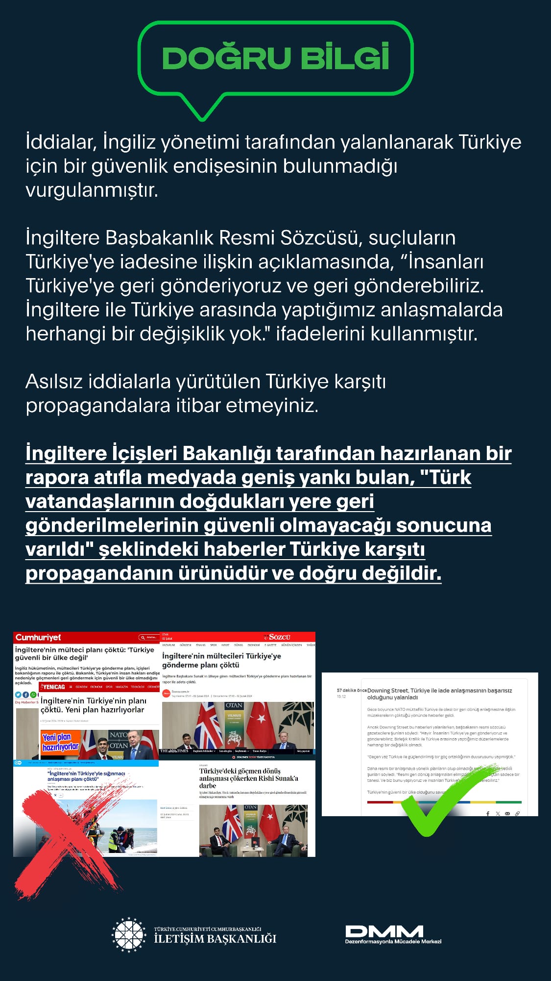 İngiltere İçişleri Bakanlığı tarafından hazırlanan bir rapora atıfla medyada geniş yankı bulan "Türk vatandaşlarının doğdukları yere geri gönderilmelerinin güvenli olmayacağı sonucuna varıldı." şeklindeki haberler Türkiye karşıtı propagandanın ürünüdür ve doğru değildir.