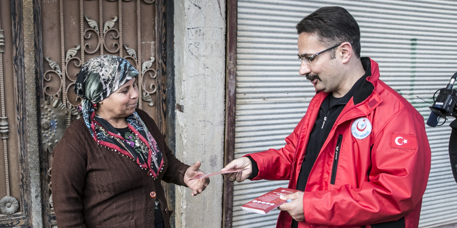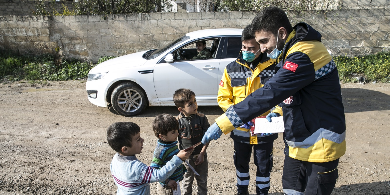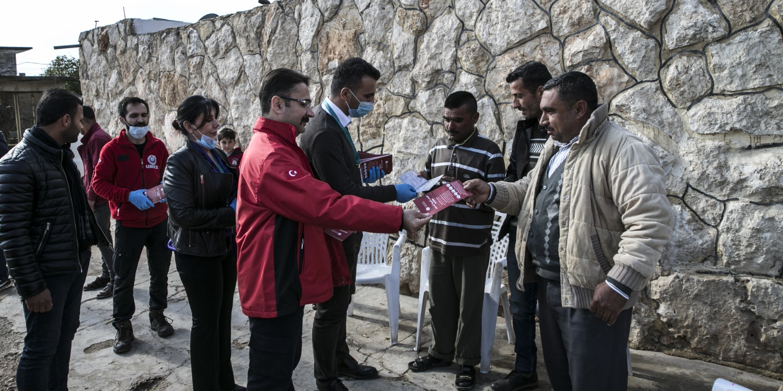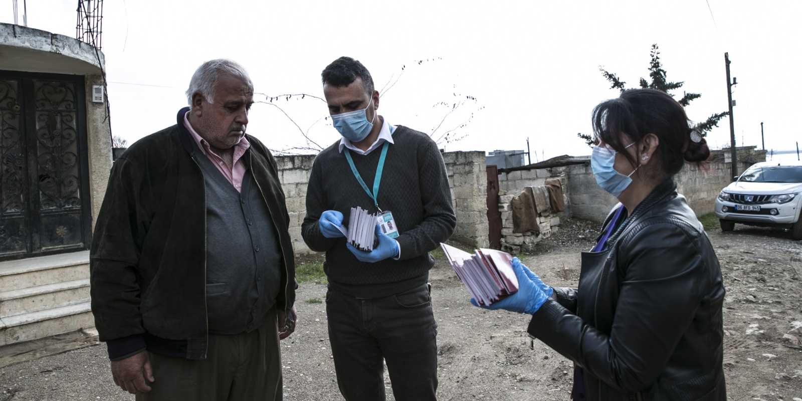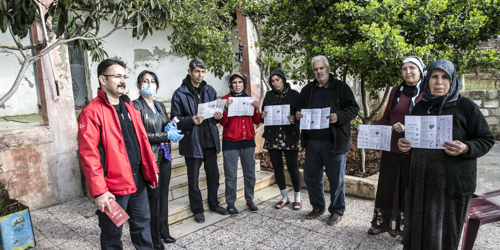 Ekipler, kapı kapı dolaşarak koronavirüsten korunma yollarını anlatan 6 sayfalık Arapça broşürleri dağıtıyor ve bölge halkını salgın tehdidine karşı bilgilendiriyor. Söz konusu broşürler 3 bölgede 500 bin haneye ulaştırılacak.