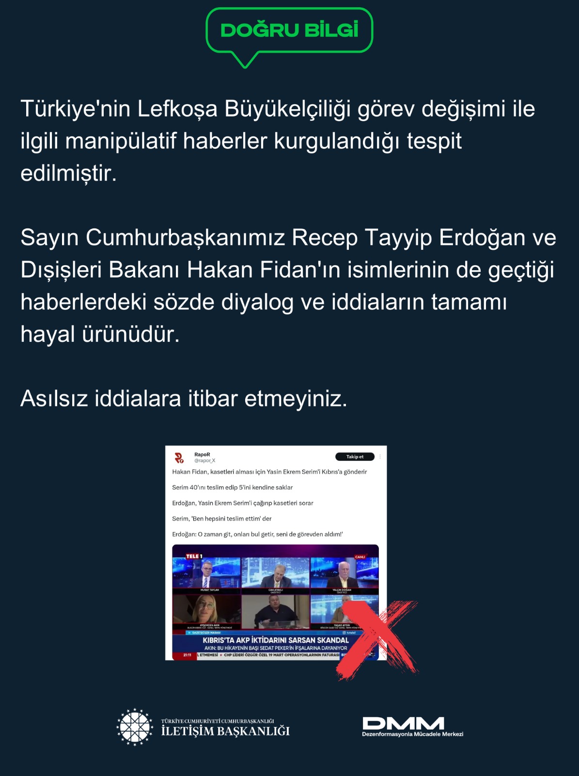 Türkiye'nin Lefkoşa Büyükelçiliği görev değişimi ile ilgili manipülatif haberler kurgulandığı tespit edilmiştir.