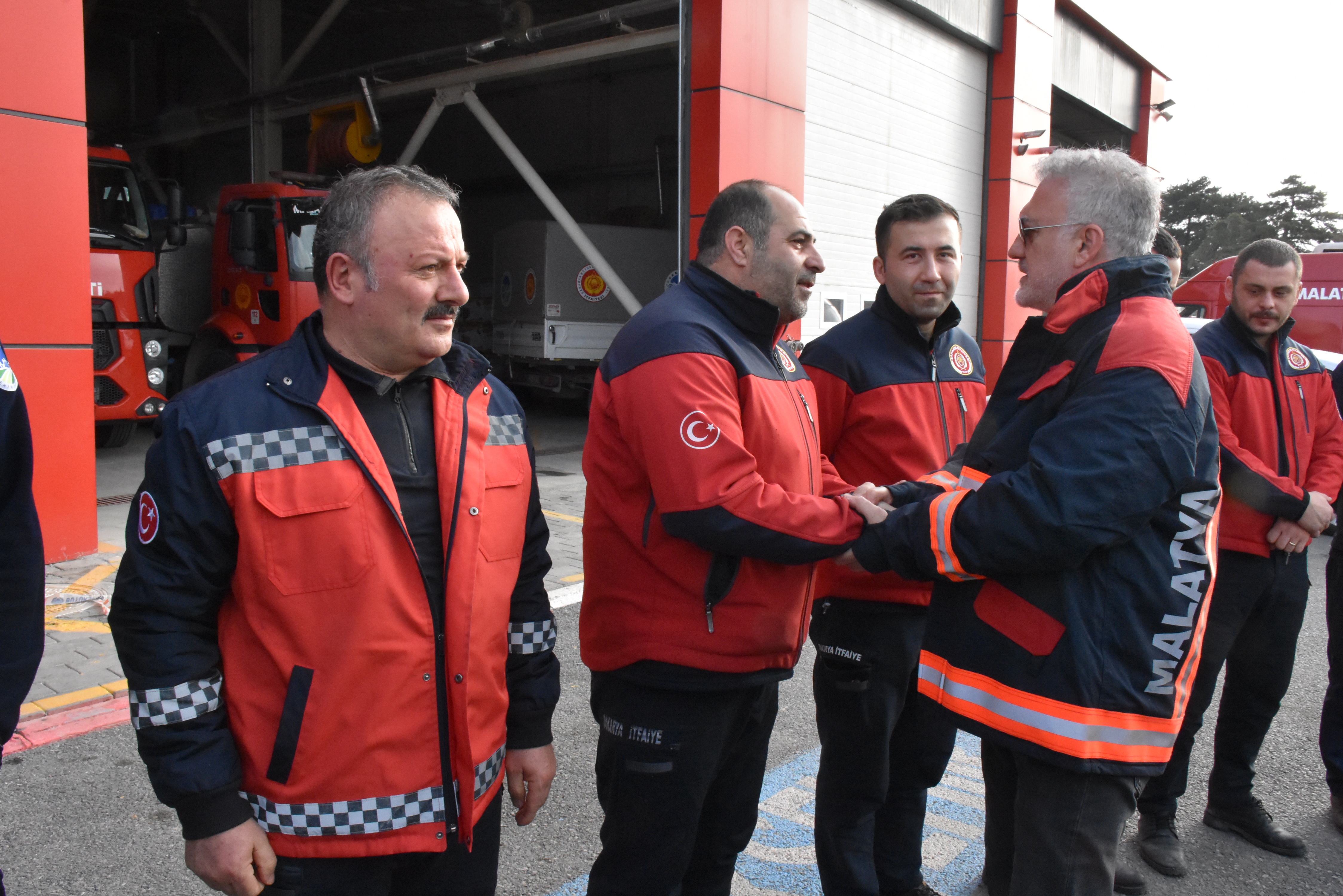 Özverili çalışmaları dolayısıyla tebrik edilen itfaiyeciler, Karadağlı'ya itfaiyeci montu hediye etti.