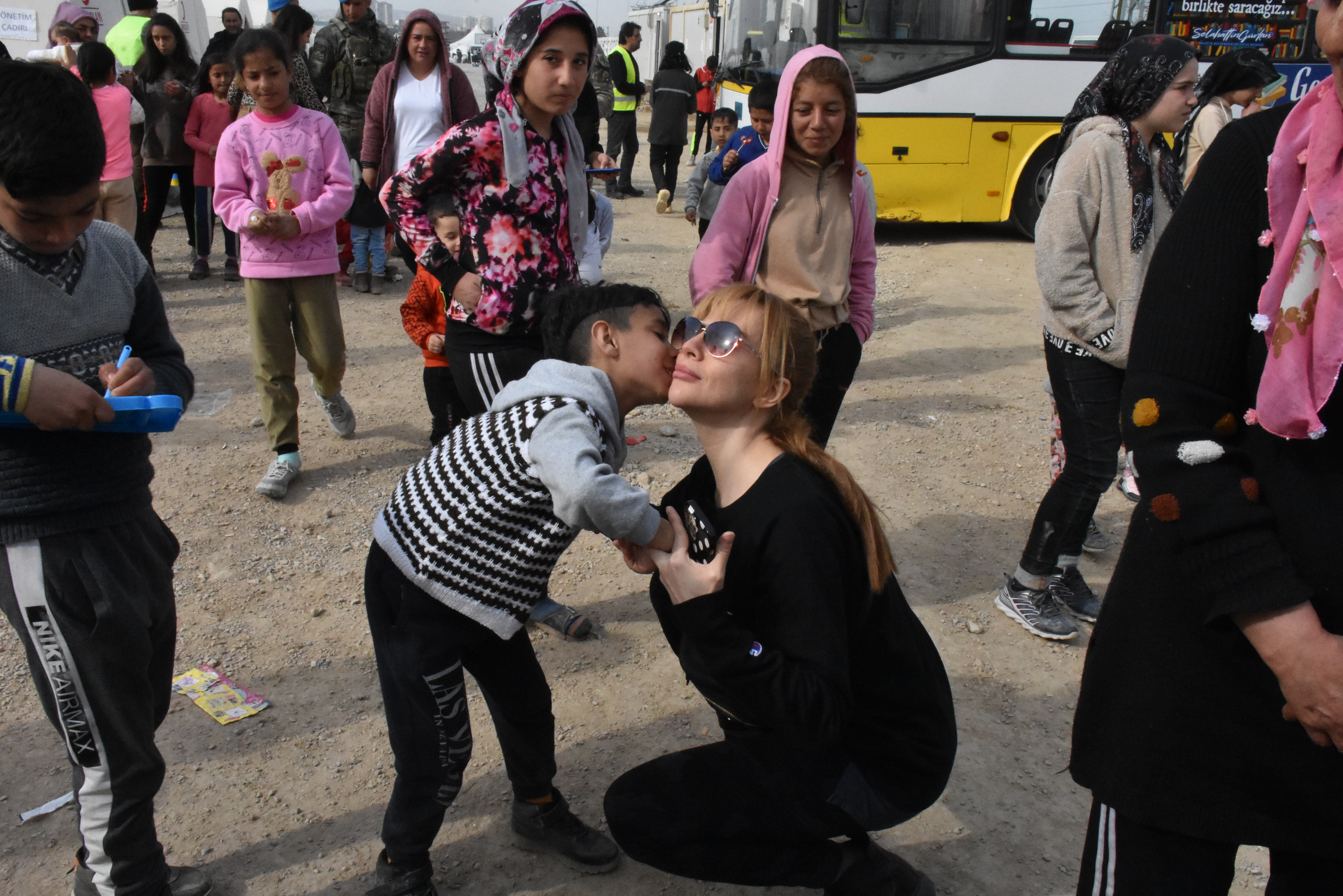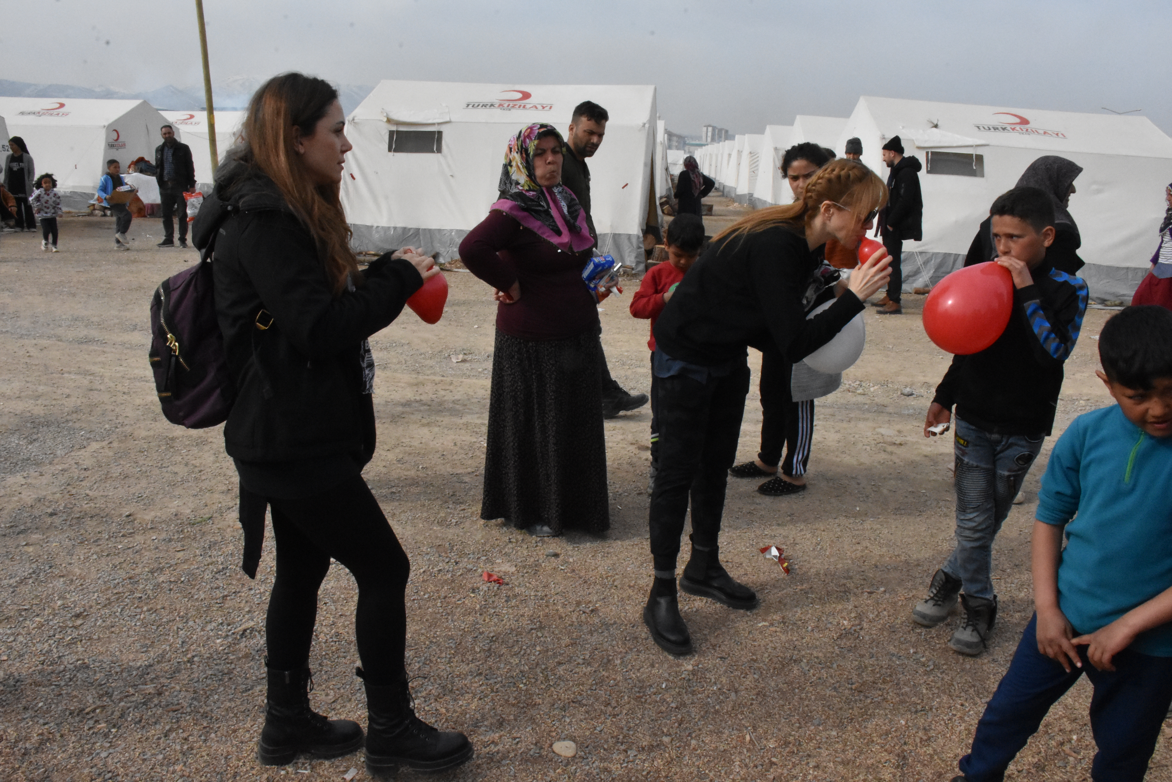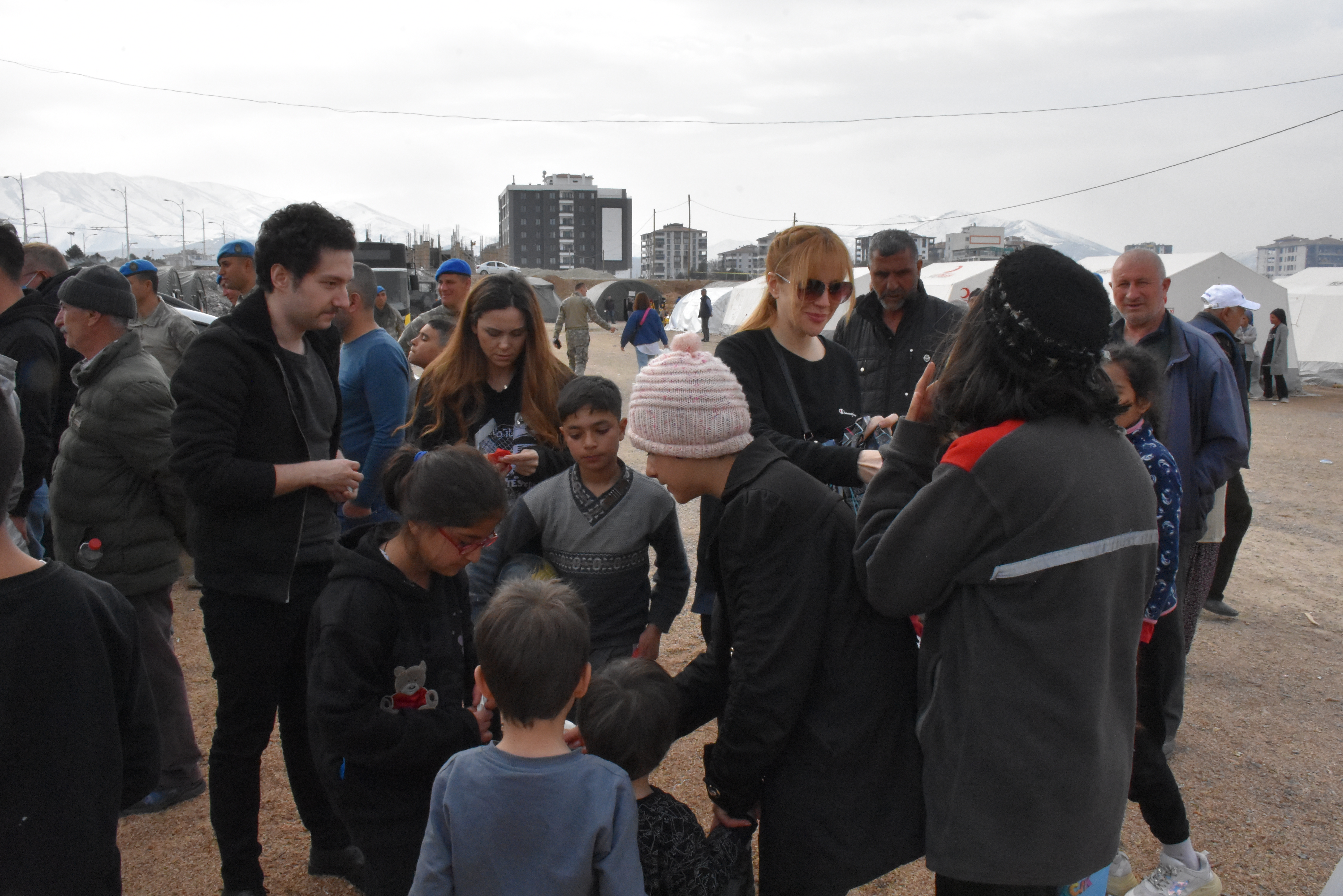 Ekip, kentteki çadır kentleri ziyaret ederek çocuklara hediyeler verdi, depremzedelerle görüştü.