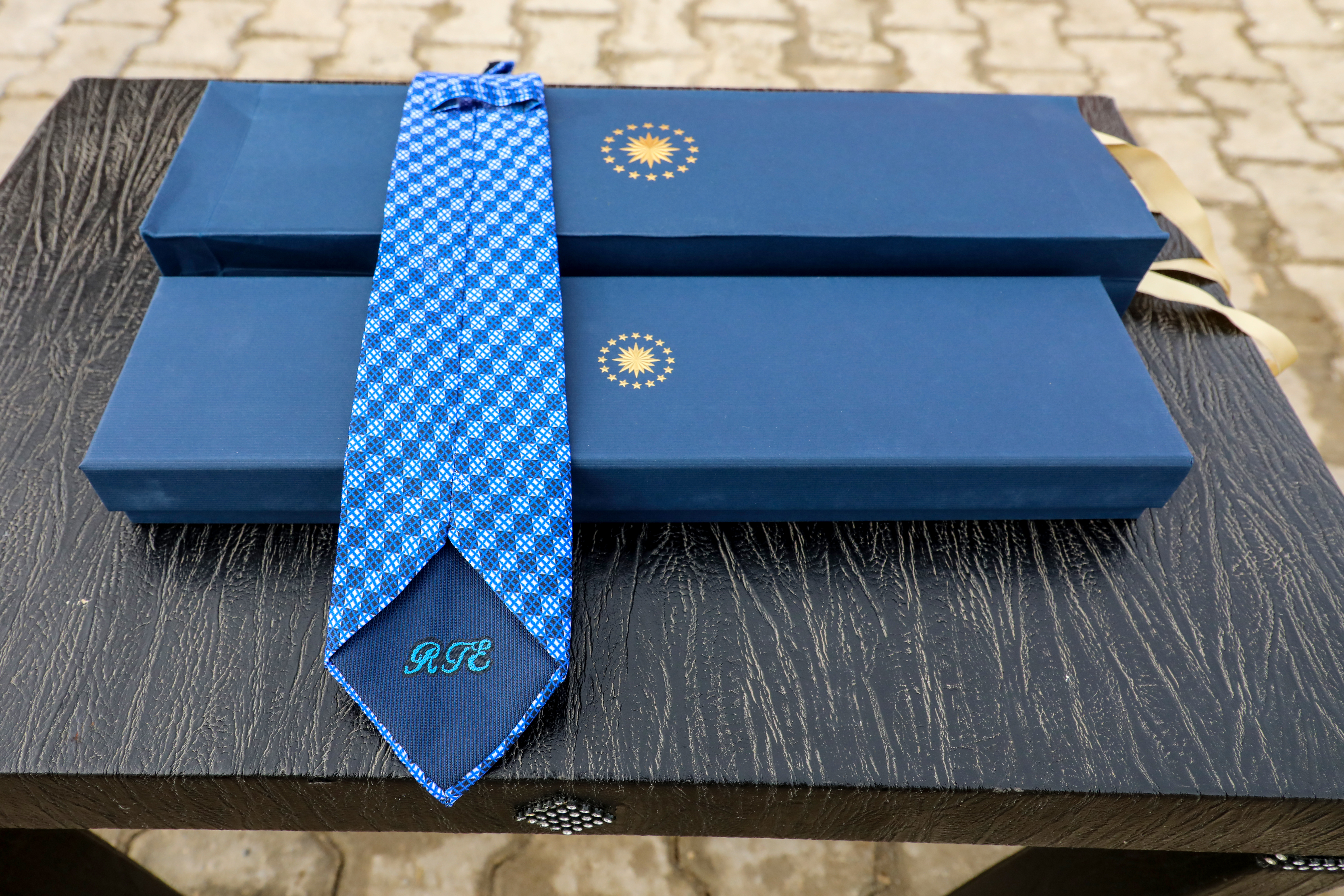 Hayatındaki en anlamla hediyelerden birini aldığını belirten Akbulut, koleksiyonuna Cumhurbaşkanı Erdoğan'ın isminin baş harflerinin bulunduğu kravatı eklemenin mutluluğunu yaşadığını söyledi.