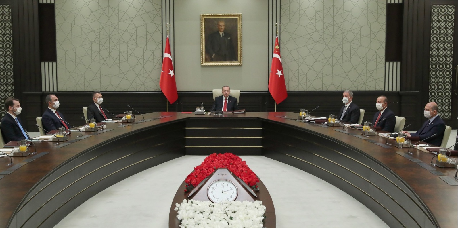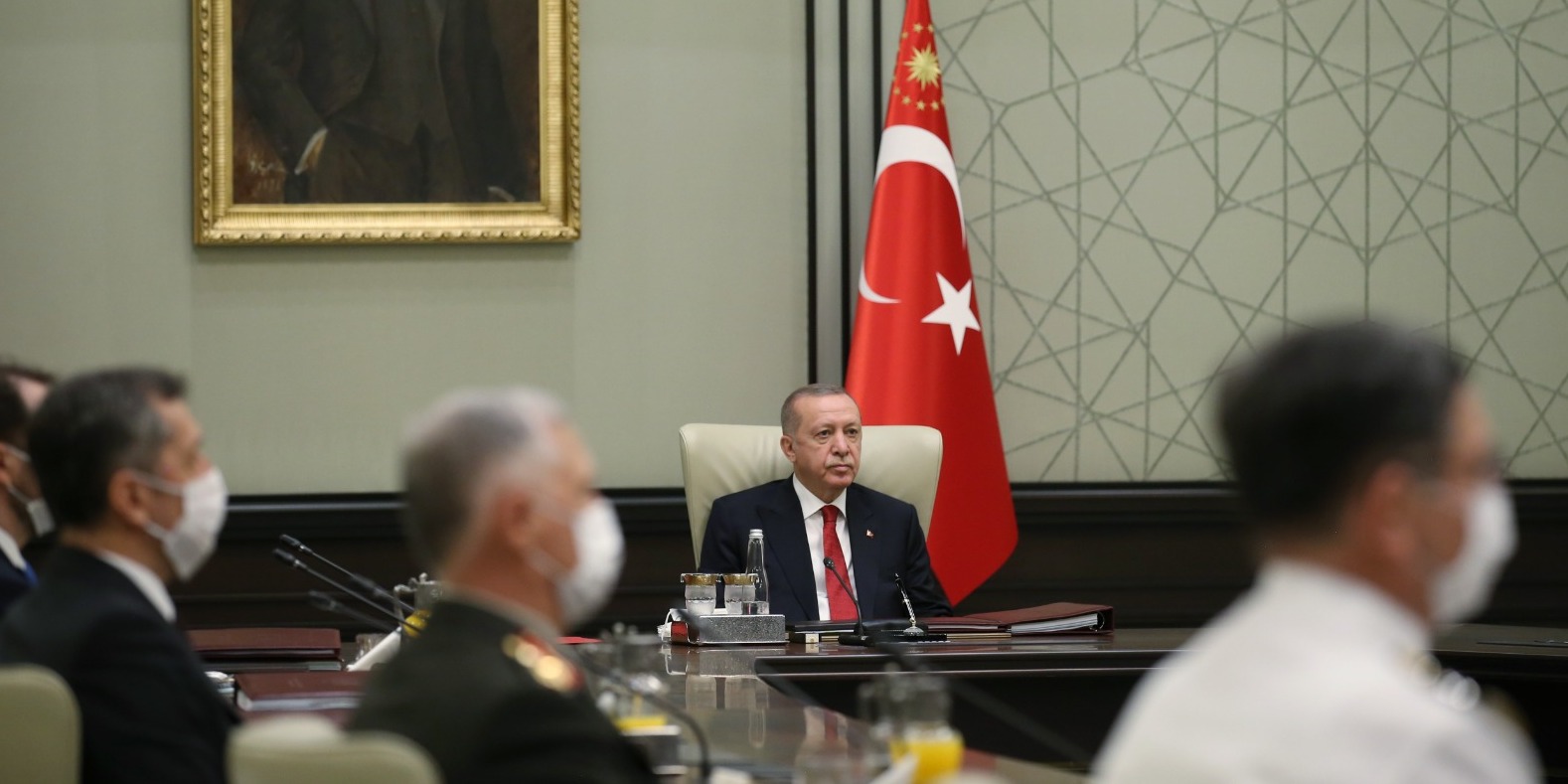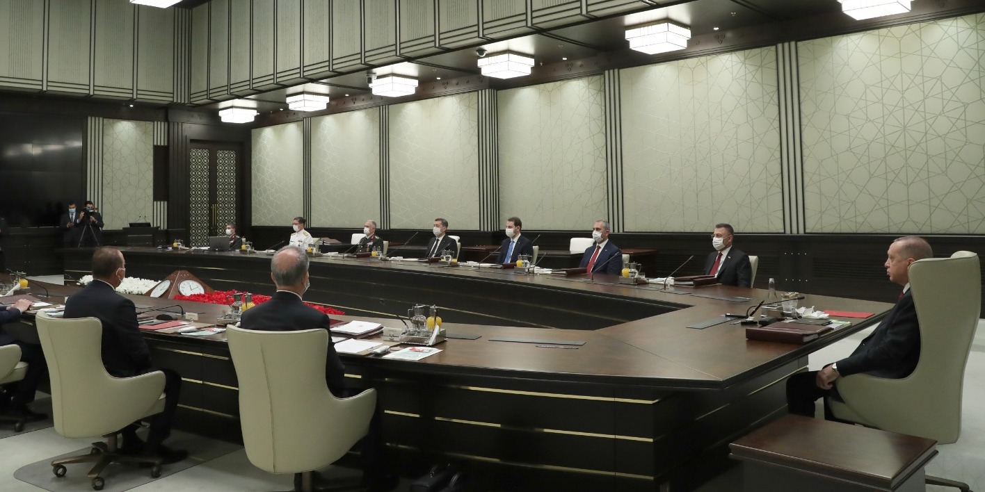 Toplantıda, Cumhurbaşkanı Yardımcısı Fuat Oktay, Milli Savunma Bakanı Hulusi Akar, Adalet Bakanı Abdulhamit Gül, İçişleri Bakanı Süleyman Soylu, Dışişleri Bakanı Mevlüt Çavuşoğlu, Hazine ve Maliye Bakanı Berat Albayrak, Milli Eğitim Bakanı Ziya Selçuk, Genelkurmay Başkanı Orgeneral Yaşar Güler, Kara Kuvvetleri Komutanı Orgeneral Ümit Dündar, Deniz Kuvvetleri Komutanı Oramiral Adnan Özbal ve Hava Kuvvetleri Komutanı Orgeneral Hasan Küçükakyüz hazır bulundu.