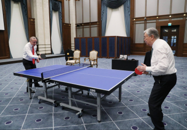 Haberler Cumhurbaşkanı Erdoğan ve Kazakistan Cumhurbaşkanı Tokayev masa tenisi oynadı İletişim Başkanlığı 10 05 2022