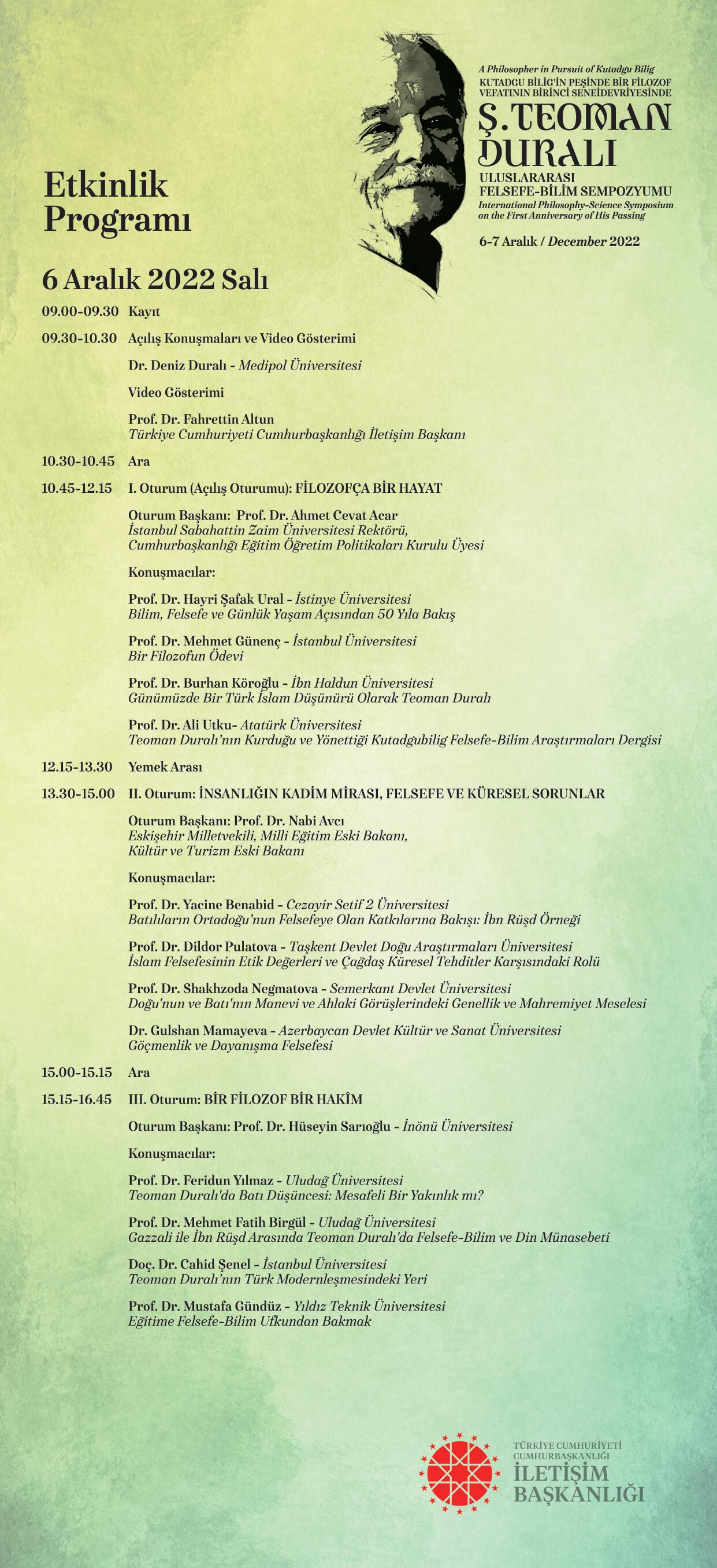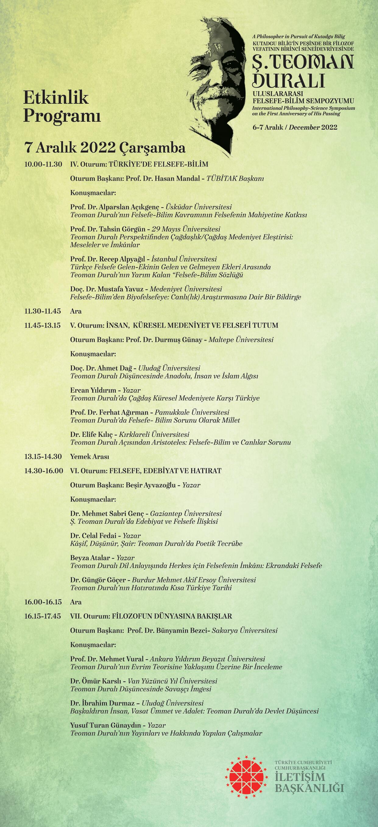 KUTADGU BİLİG’İN PEŞİNDE BİR FİLOZOF, VEFATININ BİRİNCİ SENEİDEVRİYESİNDE, Ş.TEOMAN DURALI ULUSLARARASI FELSEFE-BİLİM SEMPOZYUMU