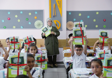 Yerel Basın Cumhurbaşkanı Erdoğan’ın eşi Emine Erdoğan, öğrencilere atıktan üretilen defter dağıttı İletişim Başkanlığı 17 09 2019