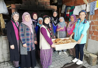 Köylü kadınlardan imece usulü bayram çöreği geleneği