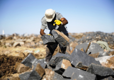 Arnavut kaldırımı taşlarına elleriyle şekil veriyorlar