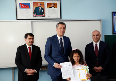 Bakan Selçuk öğrencilere karne dağıttı