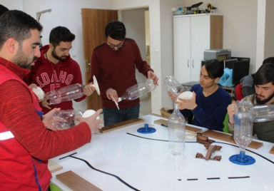 Atık şişelerden kuşlara yemlik yaptılar