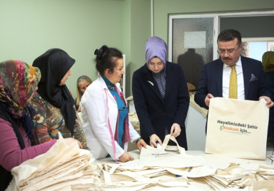Samsun’un Atakum İlçe Belediyesi, kadın kursiyerler tarafından üretilen 3 bin bez çantayı vatandaşlara ücretsiz olarak dağıtacak. Türkiye genelinde ’Sıfır Atık Projesi’ kapsamında vatandaşların bez ya da file torbaya yönlendirilmesi amacıyla 1 Ocak 2019 tarihinden itibaren alışverişlerde kullanılan plastik poşetler ücretli satılmaya başlanmıştı. Çevre ve Şehircilik Bakanlığı tarafından da desteklenen projeyle atıkların engellenmesi, ayrı ayrı toplanması ve geri dönüşümle enerji kaynağı haline getirilmesini amaçlanıyor. Atakum Belediyesi Kültür Sanat ve Eğitim Merkezi (AKSEM)...