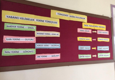 Diyarbakır’ın Bismil ilçesine bağlı Yukarı Harım İlkokulu ve İmam Hatip Ortaokulu öğretmenleri, “Türkçeyi Doğru Kullanma” projesine destek olarak, okulun kapı ve duvarlarına Türkçe’de hatalı yazılan ve hatalı seslendirilen kelimelerin doğru hallerini yazdı. Teknoloji materyallerin Türkçe diline girmesiyle maruz bıraktığı dilsel problemlerin gözle görülür derecede artığını aktaran Yukarı Harım İlkokulu ve İmam Hatip Ortaokulu Müdürü Serhat Yektaş, bu tasarıdaki amacın Türkçeyi sevdirmek ve sözcüklerin yanlış kullanımları engellemek olduğunu...