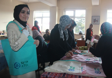 Bingöl’de biraraya gelen kadınlar, tekstil atıklarını ‘Sıfır Atık Projesi’ kapsamında bez çanta ve fileye dönüştürmek için çalışmalara başladı. Türkiye genelinde ‘Sıfır Atık Projesi’ kapsamında 1 Ocak 2019’dan itibaren vatandaşlar bez ya da fi le torbaya yönlendirilecek ve alışveriş poşetleri ücretli olacak. Çevre ve Şehircilik Bakanlığı tarafından da desteklenen projeyle atıkların olabildiğince engellenmesi ya da en aza düşürülmesi planlanırken, Bingöl’de el ele veren AK Partili kadınlar renkli alı...